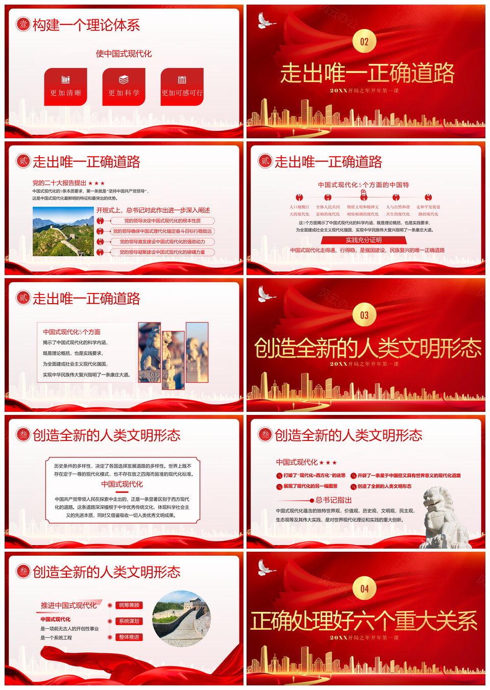 这是一张2023中国式现代化党的二十大精神研讨班专题党课PPT模板,包含2023、中国式现代化、党的二十大精神、研讨班、专题党课等主题内容,也可用作2023中国式现代化党的二十大、中国式现代化党的二十大研讨班、党的二十大精神研讨班专题、现代化党的二十大研讨班专题、中国式现代化党的二十大、党的二十大精神研讨班、研讨班专题党课、中国式现代化研讨班、现代化党的二十大精神、党的二十大专题党课、中国式现代化、党的二十大精神、研讨班专题、专题党课、现代化研讨班等PPT场景使用。 风云办公提供的2023中国式现代化党的二十大精神研讨班专题党课PPT模板,下载格式为pptx,一共20页,作品中文字及图均可以修改和编辑,图片更改请在作品中右键图片并更换,文字修改请直接点击文字进行修改。