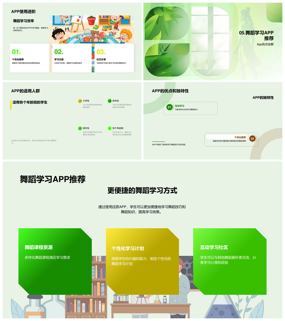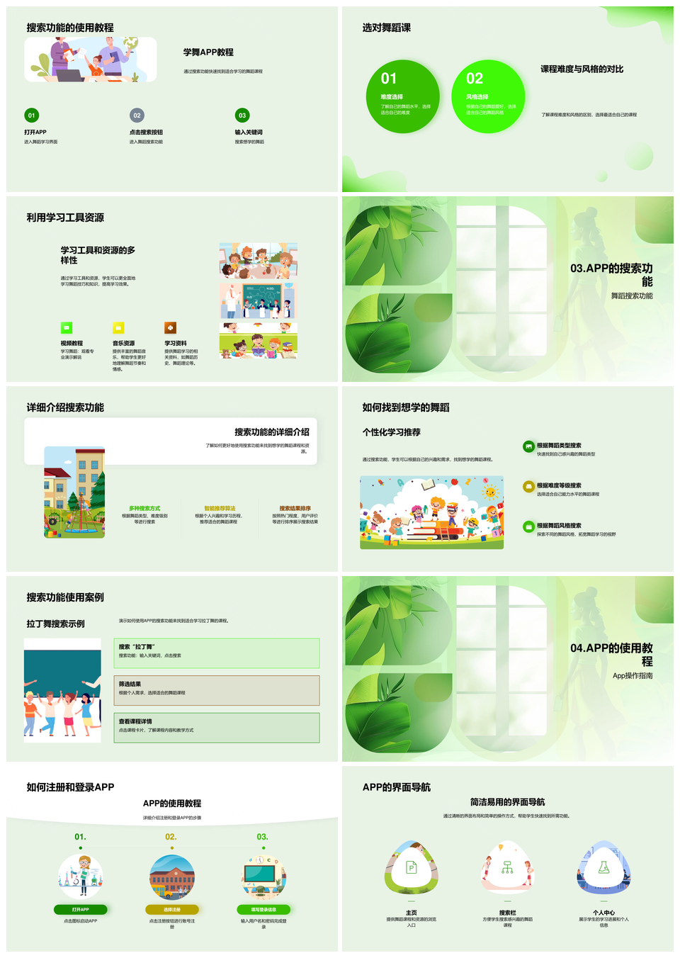 舞蹈学习APP核心功能用户体验设计教程PPT模板推荐