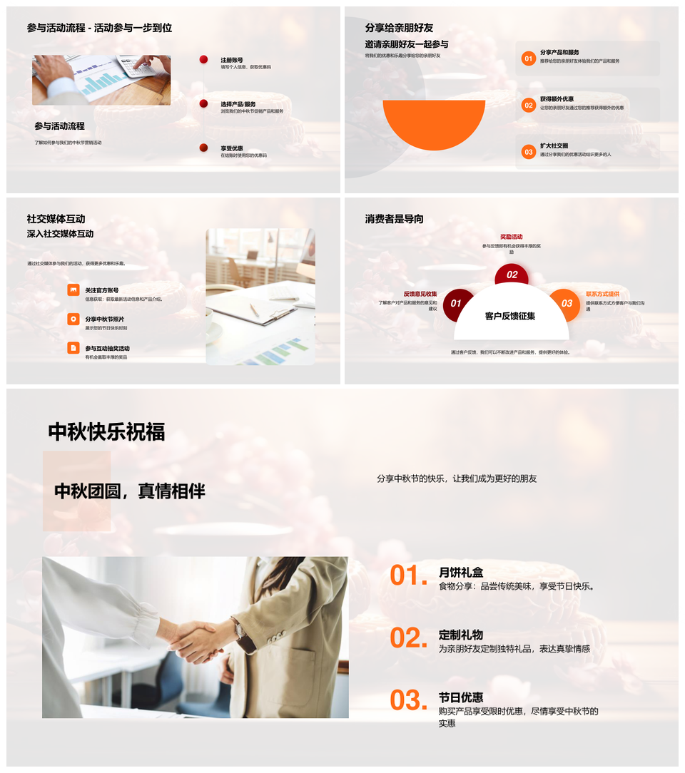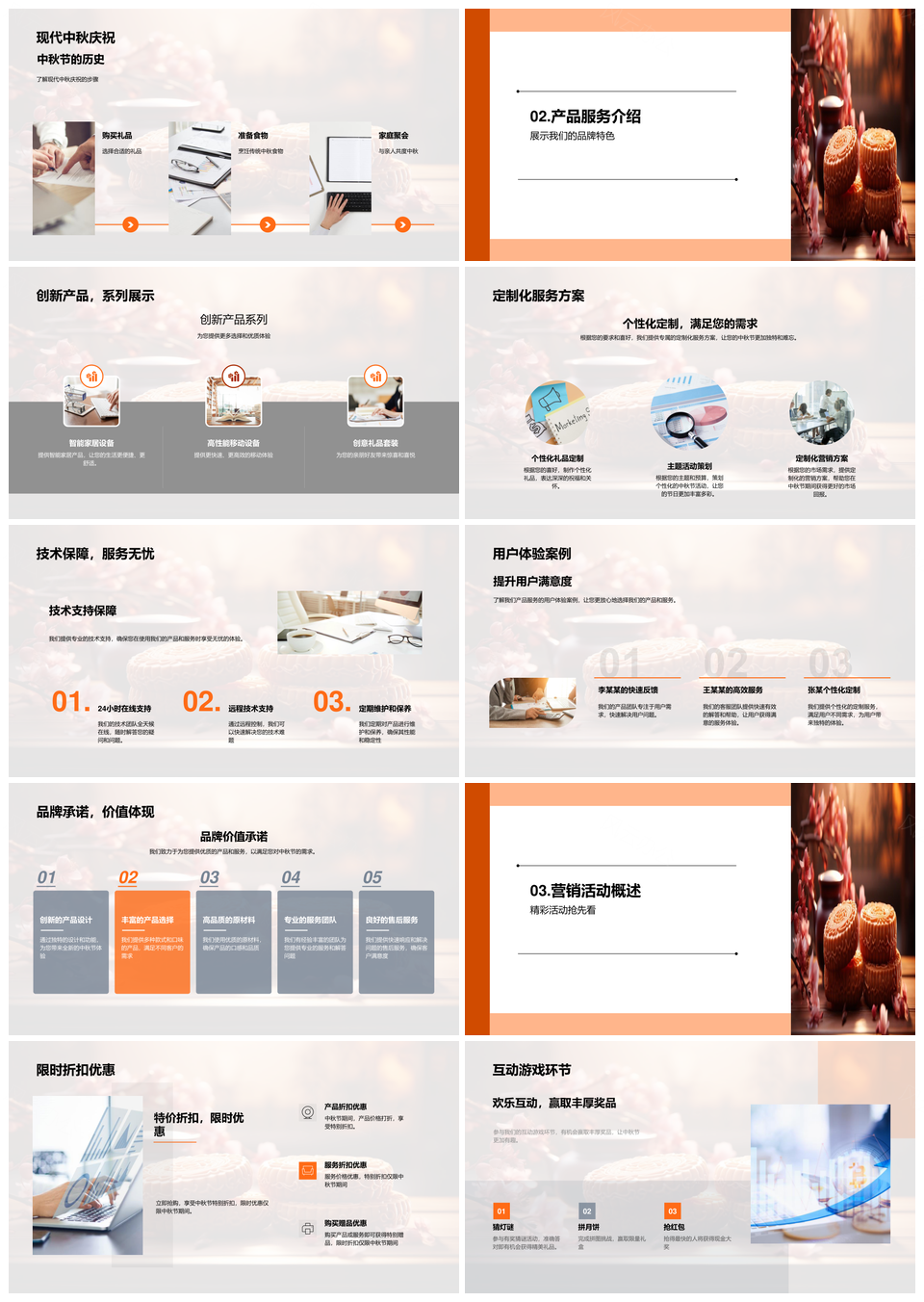 这是一张中秋月饼市场营销推广产品服务优势特色PPT模板,包含中秋、月饼、市场、营销、推广、产品、服务、优势、特色等主题内容,也可用作中秋月饼市场营销推广、市场营销推广产品服务、推广产品服务优势特色、中秋月饼市场营销、市场营销推广产品、推广产品服务优势、产品服务优势特色、中秋月饼市场推广、月饼市场营销推广、市场推广产品服务、营销推广产品优势、中秋月饼产品服务、月饼市场优势特色、市场服务优势特色、产品服务特色优势等PPT场景使用。 风云办公提供的中秋月饼市场营销推广产品服务优势特色PPT模板,下载格式为pptx,一共33页,作品中文字及图均可以修改和编辑,图片更改请在作品中右键图片并更换,文字修改请直接点击文字进行修改。