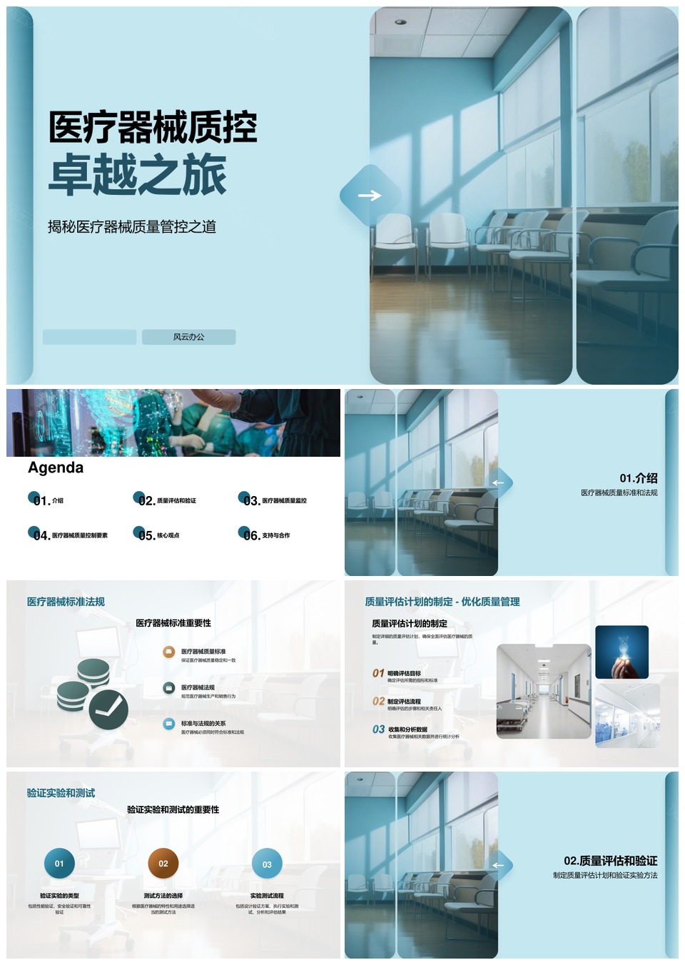风云办公提供的医疗器械质控法规验证评估与测试方法PPT模板,下载格式为pptx,一共26页,作品中文字及图均可以修改和编辑,图片更改请在作品中右键图片并更换,文字修改请直接点击文字进行修改。