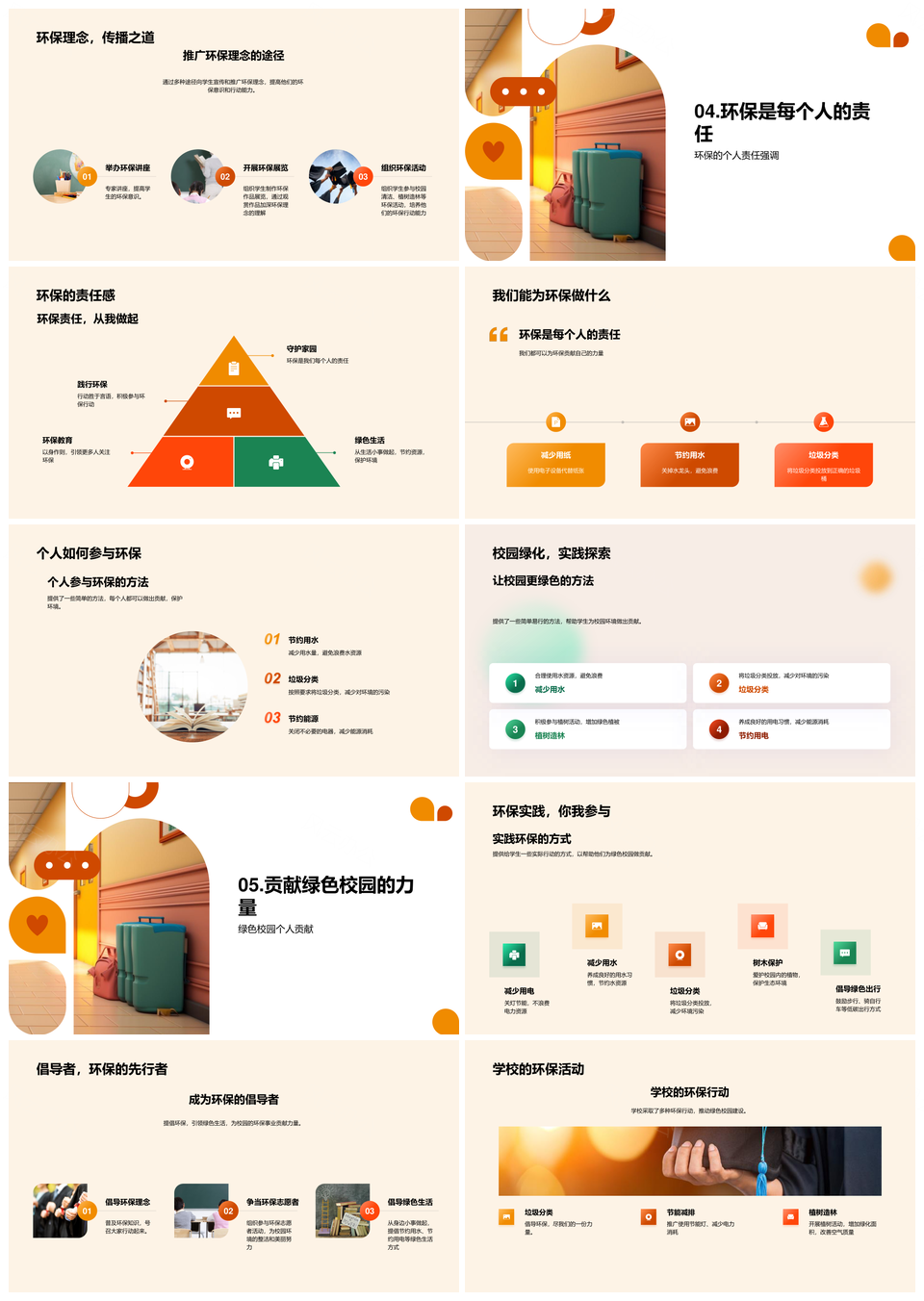 风云办公提供的校园环保行动初二践行绿色教育责任PPT模板,下载格式为pptx,一共29页,作品中文字及图均可以修改和编辑,图片更改请在作品中右键图片并更换,文字修改请直接点击文字进行修改。