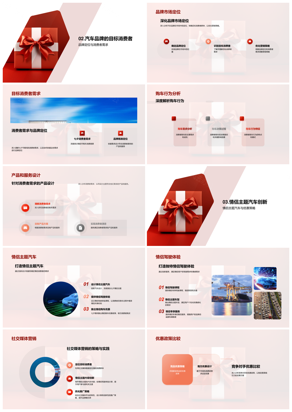 七夕情侣市场豪华汽车社交媒体品牌营销PPT模板
