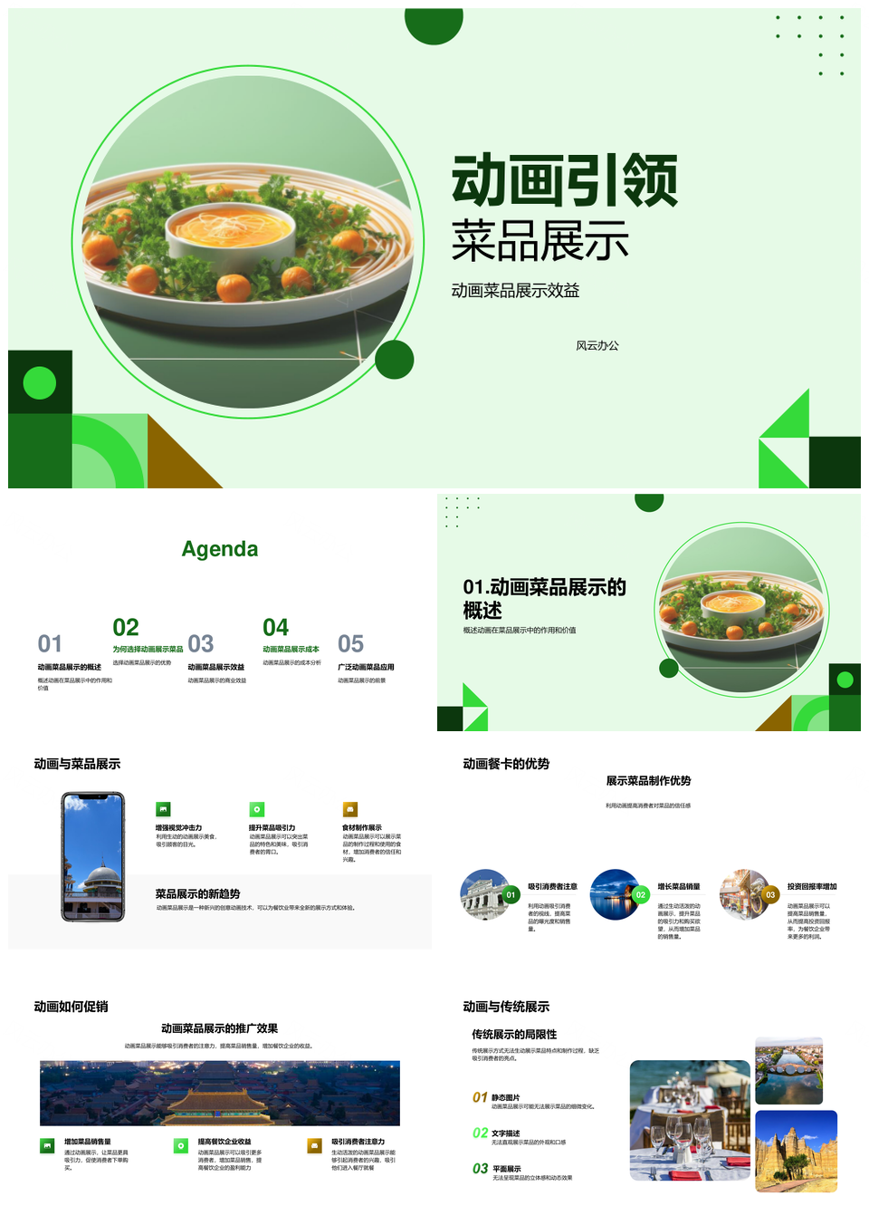 风云办公提供的动画菜品展示提升餐饮销售投资回报率PPT模板,下载格式为pptx,一共28页,作品中文字及图均可以修改和编辑,图片更改请在作品中右键图片并更换,文字修改请直接点击文字进行修改。