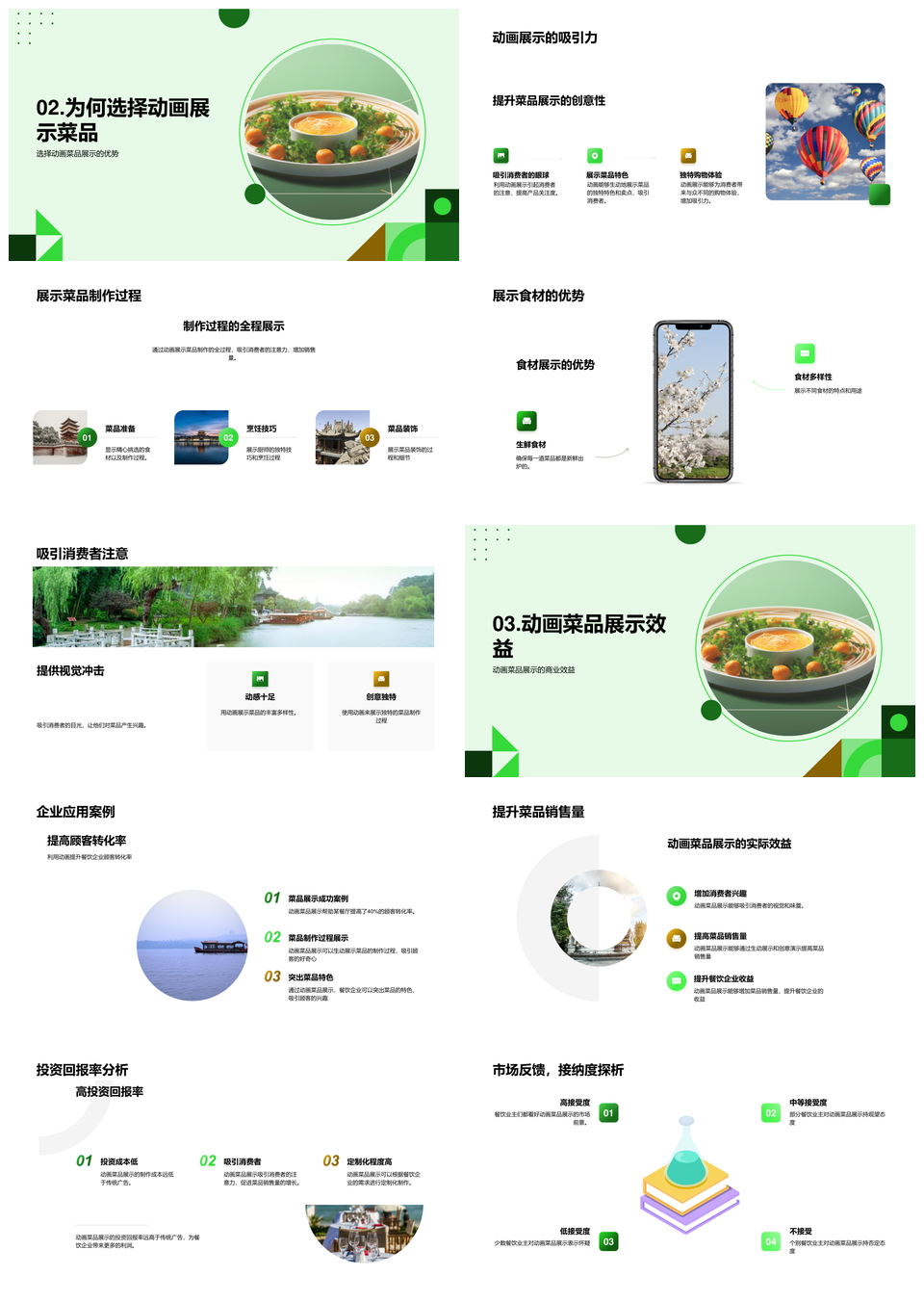 这是一张动画菜品展示提升餐饮销售投资回报率PPT模板,包含动画、菜品展示、提升、餐饮销售、投资回报率等主题内容,也可用作动画菜品展示提升、菜品展示提升餐饮、展示提升餐饮销售、提升餐饮销售投资回报率、动画菜品展示、菜品展示提升、展示提升餐饮、提升餐饮销售、餐饮销售投资回报率、动画菜品、菜品展示、展示提升、提升餐饮、餐饮销售、销售投资回报率等PPT场景使用。