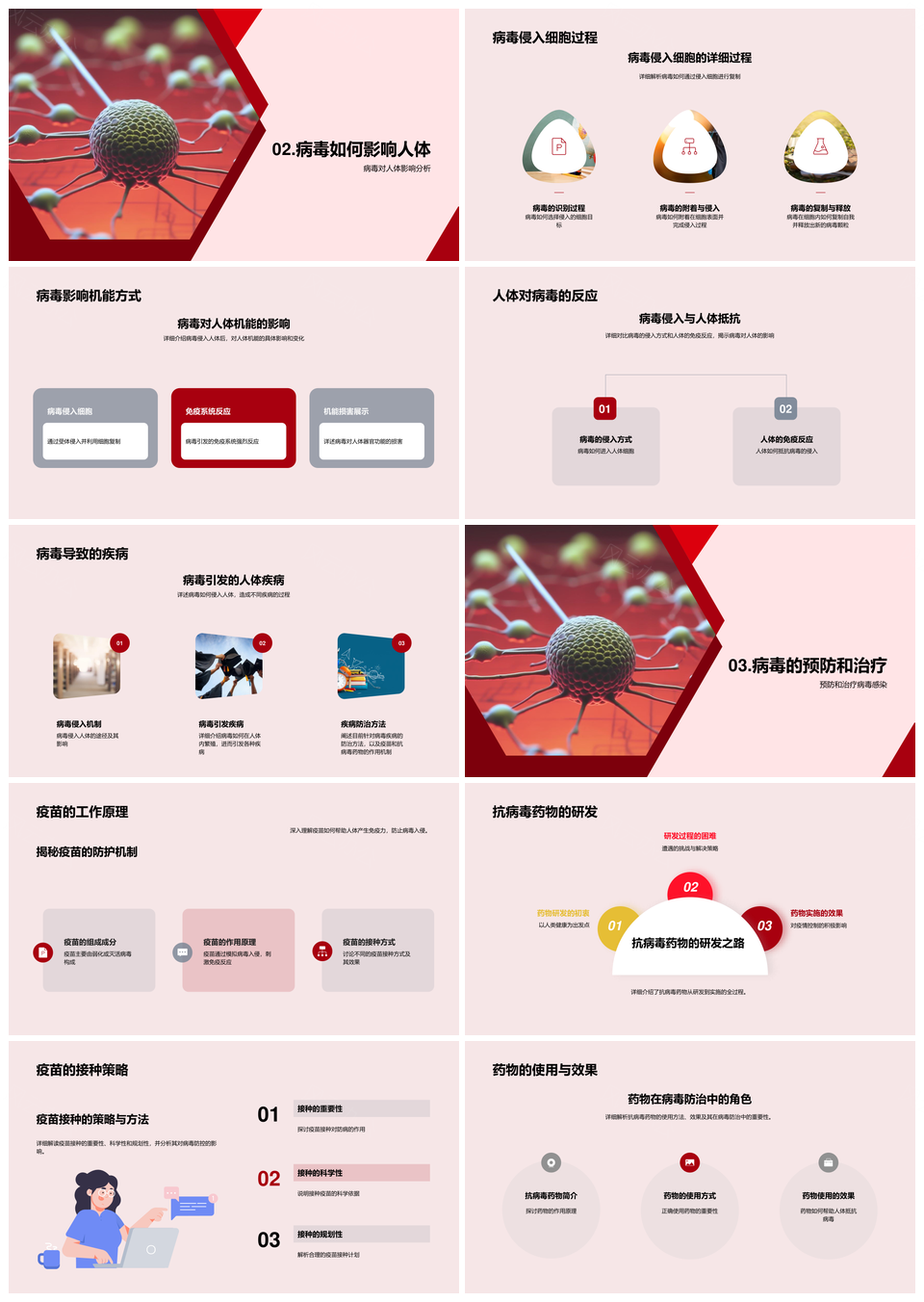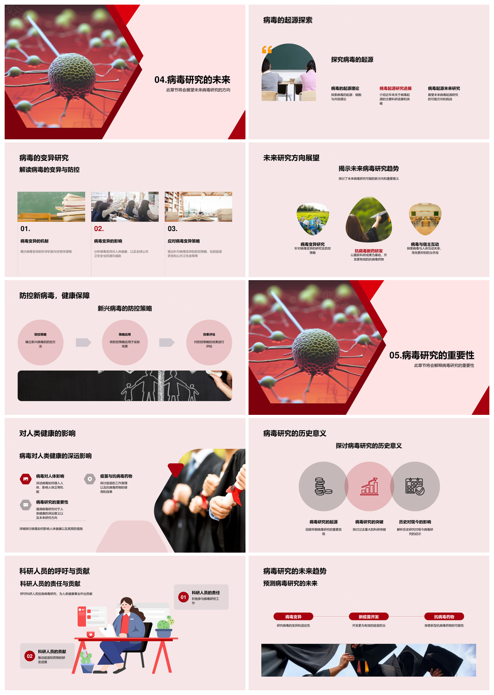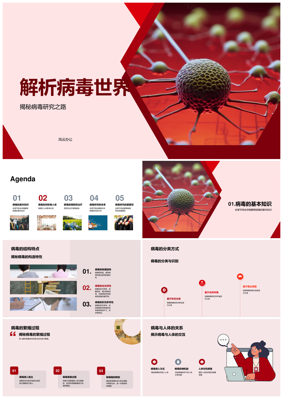这是一张病毒结构繁殖起源与人体疫苗药物显微研究PPT模板,包含病毒结构、繁殖、起源、人体、疫苗、药物、显微、研究等主题内容,也可用作病毒结构繁殖起源、结构繁殖起源人体、病毒结构疫苗药物、人体疫苗药物显微、疫苗药物显微研究、病毒结构繁殖研究、结构繁殖显微研究、病毒起源疫苗药物、繁殖人体显微研究、病毒疫苗药物研究、结构药物显微研究、人体疫苗显微研究、病毒结构繁殖、繁殖起源人体、疫苗药物显微等PPT场景使用。 风云办公提供的病毒结构繁殖起源与人体疫苗药物显微研究PPT模板,下载格式为pptx,一共28页,作品中文字及图均可以修改和编辑,图片更改请在作品中右键图片并更换,文字修改请直接点击文字进行修改。
