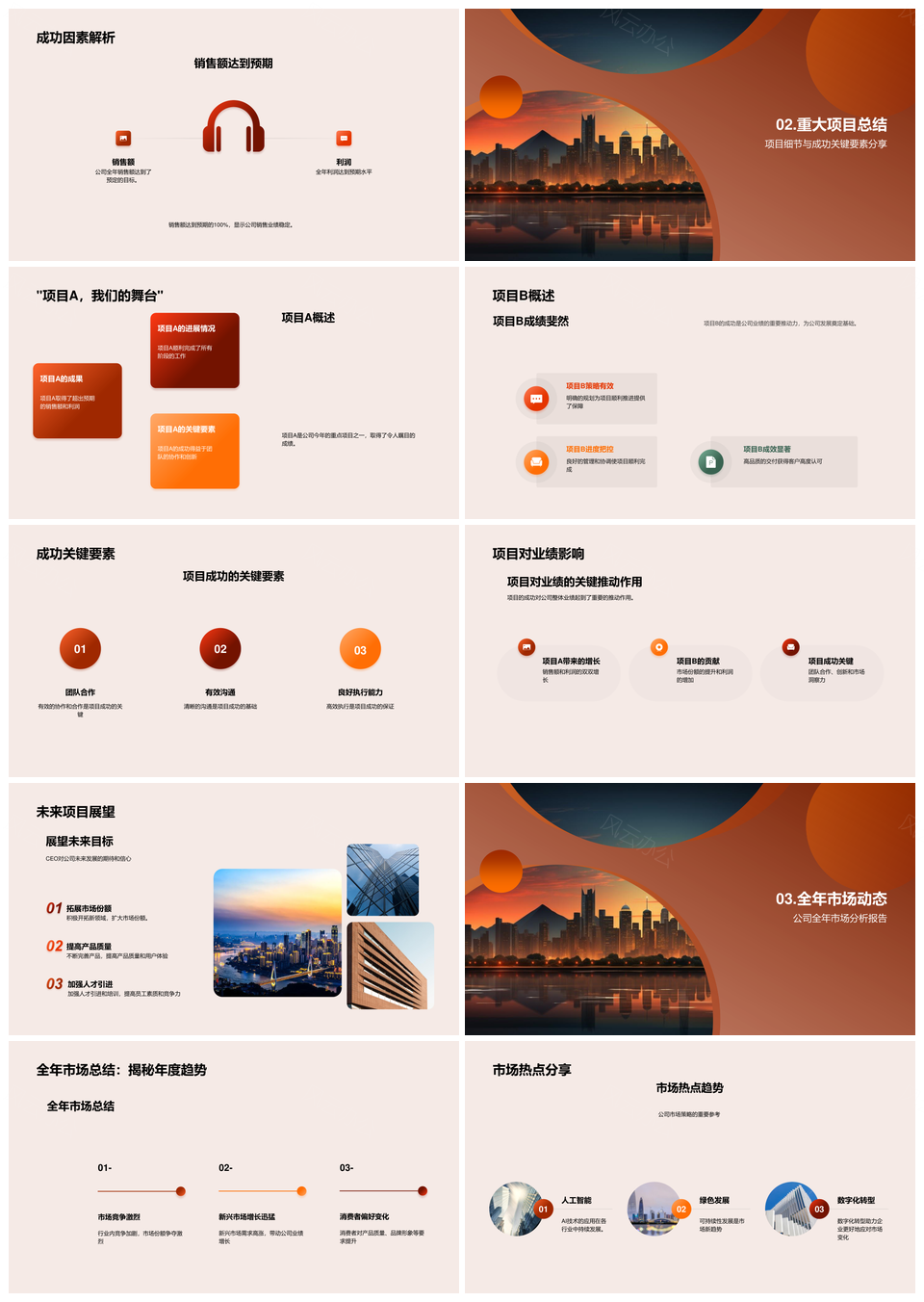 风云办公提供的公司年度业绩重大项目成就与未来展望PPT模板,下载格式为pptx,一共33页,作品中文字及图均可以修改和编辑,图片更改请在作品中右键图片并更换,文字修改请直接点击文字进行修改。
