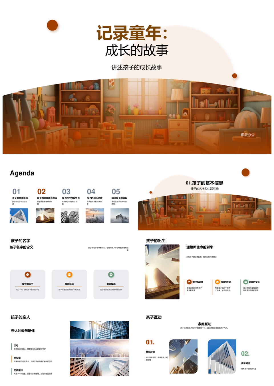 风云办公提供的家庭镜头记录孩子成长点滴足迹PPT模板,下载格式为pptx,一共28页,作品中文字及图均可以修改和编辑,图片更改请在作品中右键图片并更换,文字修改请直接点击文字进行修改。