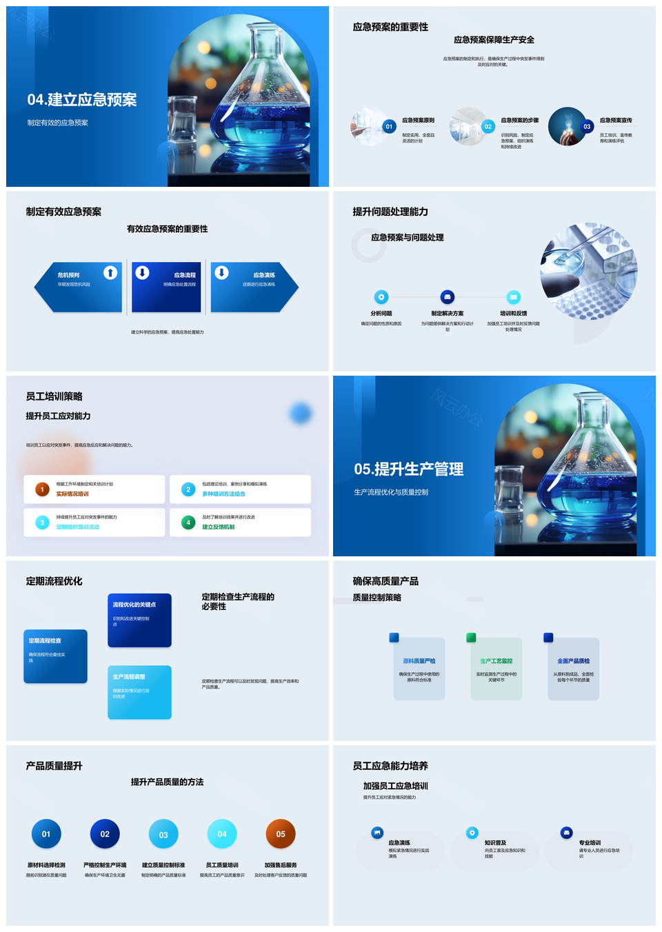 风云办公提供的化学药品生产流程优化与质量提升管理PPT模板,下载格式为pptx,一共28页,作品中文字及图均可以修改和编辑,图片更改请在作品中右键图片并更换,文字修改请直接点击文字进行修改。