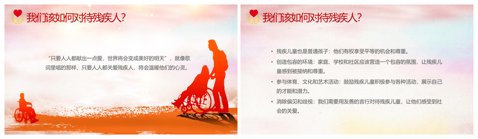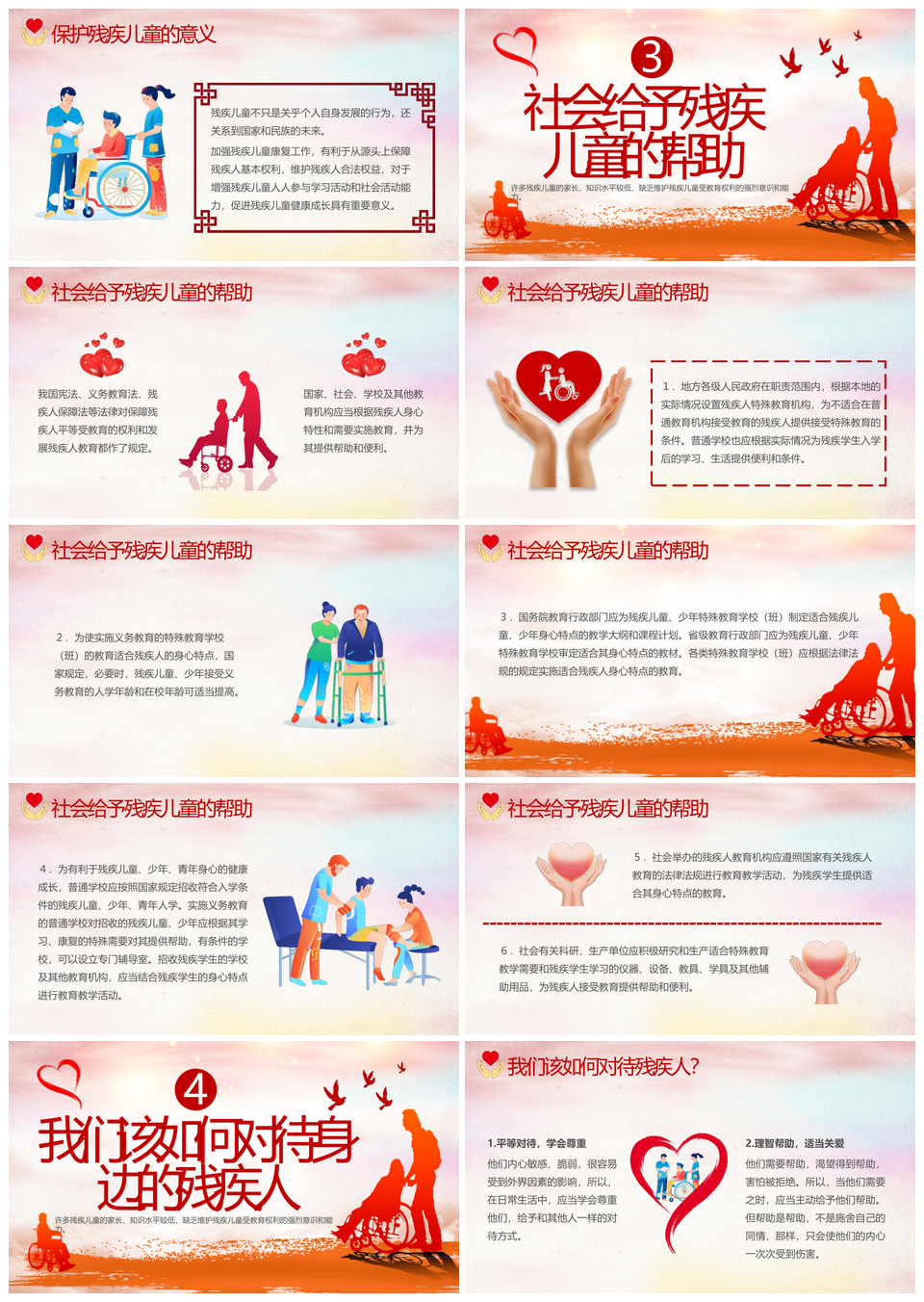 2025红色卡通关爱残疾儿童说课课件PPT模板推荐