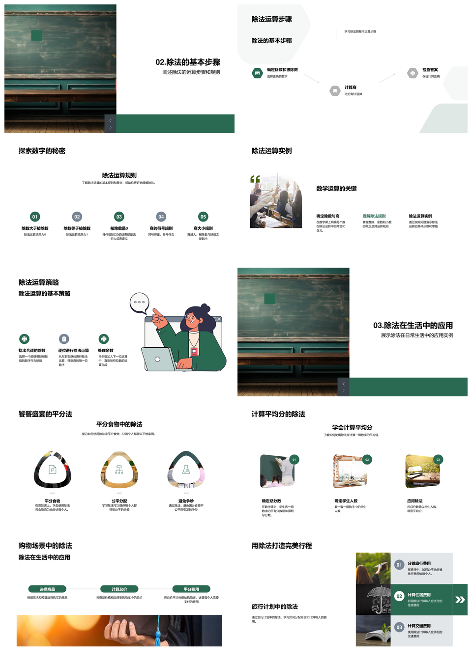 这是一张除法运算技巧定义黑板解密PPT模板,包含除法运算、技巧、定义、黑板、解密等主题内容,也可用作除法运算技巧定义、运算技巧定义黑板、技巧定义黑板解密、除法运算技巧、运算技巧定义、技巧定义黑板、定义黑板解密、除法运算、运算技巧、技巧定义、定义黑板、黑板解密、除法技巧、除法定义、运算定义等PPT场景使用。 风云办公提供的除法运算技巧定义黑板解密PPT模板,下载格式为pptx,一共28页,作品中文字及图均可以修改和编辑,图片更改请在作品中右键图片并更换,文字修改请直接点击文字进行修改。