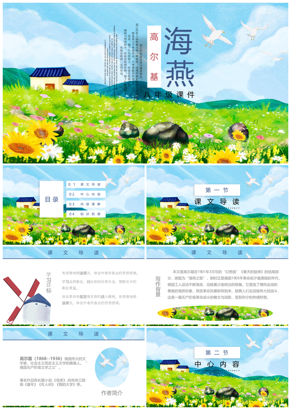人教版八年级语文高尔基海燕教案教学公开课PPT模板推荐