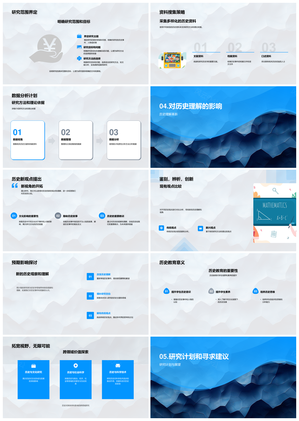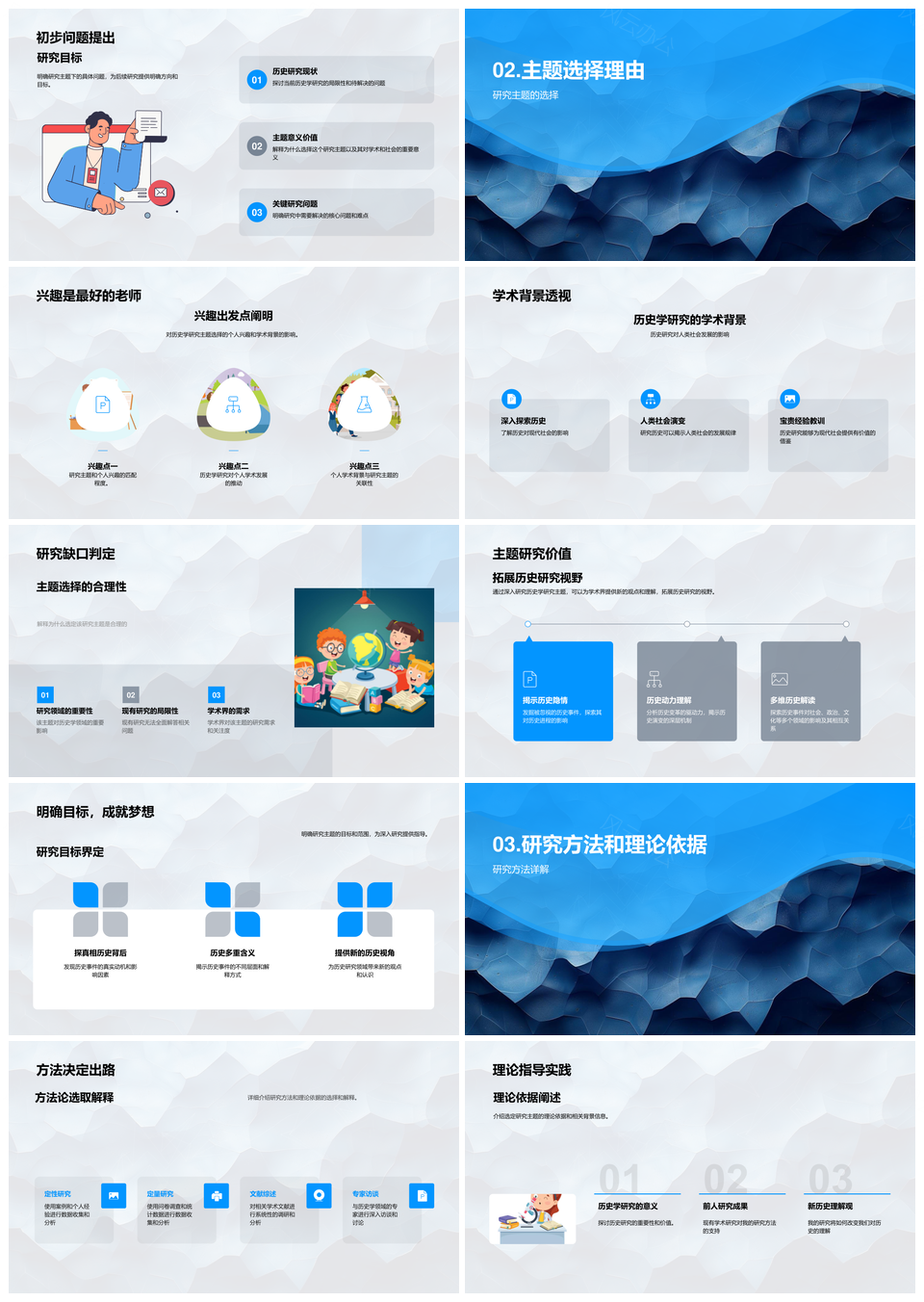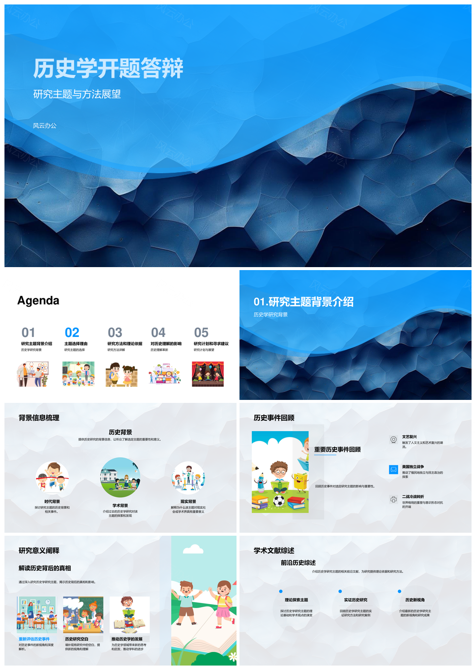 风云办公提供的历史学开题答辩研究主题方法背景计划PPT模板,下载格式为pptx,一共33页,作品中文字及图均可以修改和编辑,图片更改请在作品中右键图片并更换,文字修改请直接点击文字进行修改。