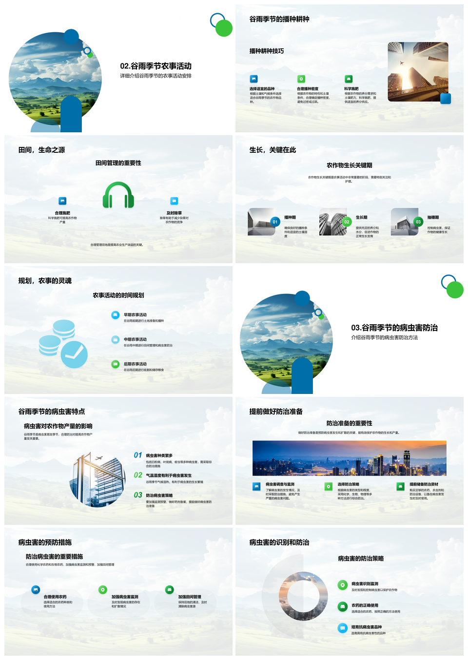 风云办公提供的谷雨农事播种管理及增产技术PPT模板,下载格式为pptx,一共28页,作品中文字及图均可以修改和编辑,图片更改请在作品中右键图片并更换,文字修改请直接点击文字进行修改。