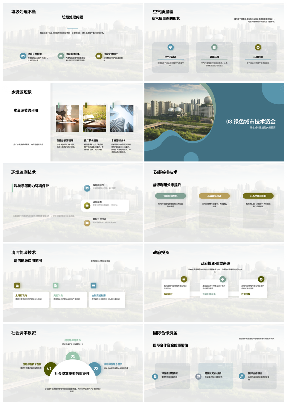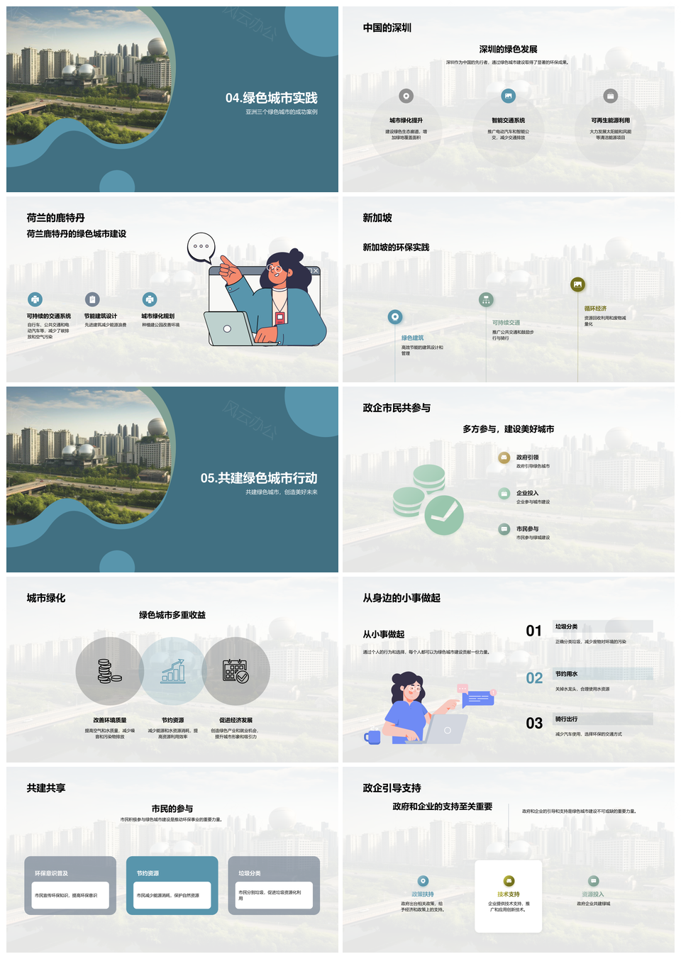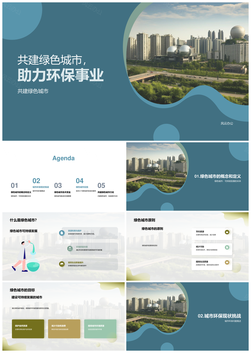 风云办公提供的共建绿色城市生态共融可持续发展PPT模板,下载格式为pptx,一共29页,作品中文字及图均可以修改和编辑,图片更改请在作品中右键图片并更换,文字修改请直接点击文字进行修改。