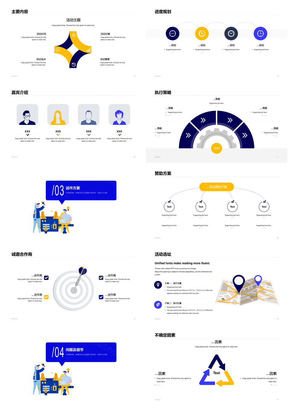 这是一张新媒体团队电脑创意运营简约色块创新活动策划PPT模板,包含新媒体团队、电脑、创意、运营、简约色块、创新活动、策划等主题内容,也可用作新媒体团队创意运营、新媒体团队简约色块、新媒体创意运营简约、电脑创意运营策划、创意运营简约色块、团队电脑创意运营、简约色块创新活动、色块创新活动策划、团队创意活动策划、新媒体创新活动策划、新媒体简约色块、电脑创意运营、创意运营简约、简约色块创新、活动策划创意等PPT场景使用。 风云办公提供的新媒体团队电脑创意运营简约色块创新活动策划PPT模板,下载格式为pptx,一共29页,作品中文字及图均可以修改和编辑,图片更改请在作品中右键图片并更换,文字修改请直接点击文字进行修改。