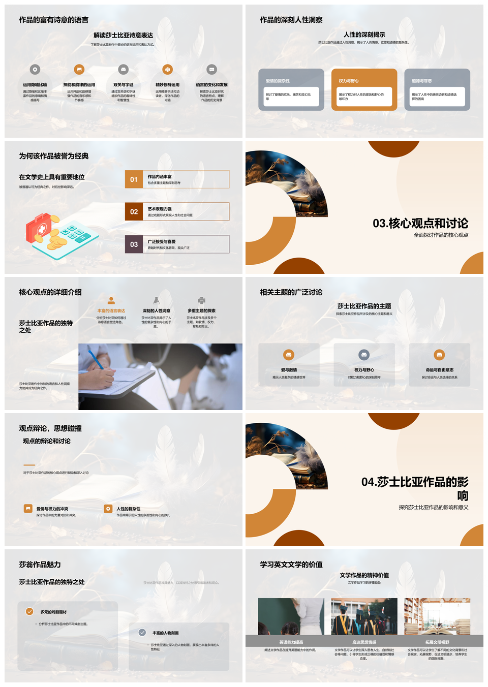 风云办公提供的莎士比亚经典剧作诗意语言人性洞察PPT模板,下载格式为pptx,一共23页,作品中文字及图均可以修改和编辑,图片更改请在作品中右键图片并更换,文字修改请直接点击文字进行修改。