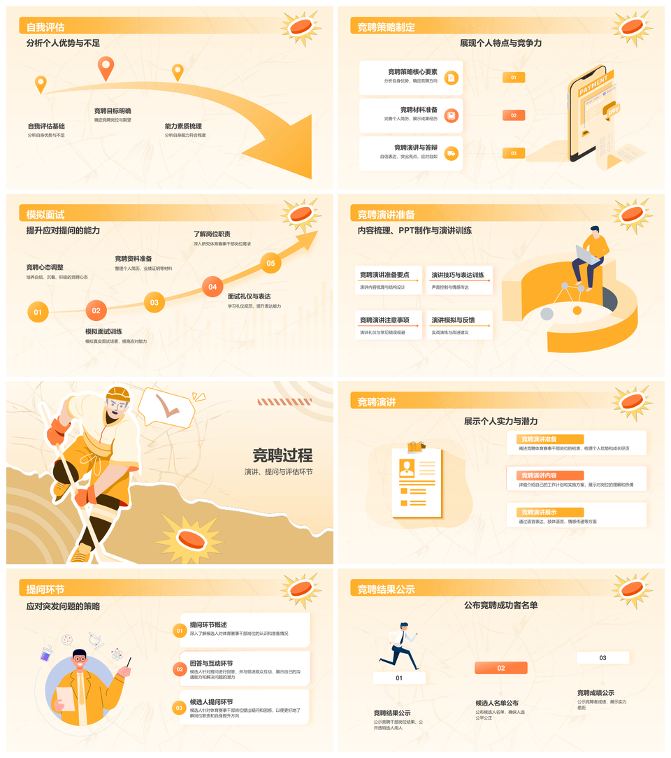 这是一张体育干部竞聘团队建设公平竞争激情贡献发展PPT模板,包含体育干部、竞聘、团队建设、公平竞争、激情、贡献、发展等主题内容,也可用作体育干部竞聘团队、干部竞聘团队建设、竞聘团队建设公平、团队建设公平竞争、建设公平竞争激情、公平竞争激情贡献、竞争激情贡献发展、体育干部竞聘、干部竞聘团队、竞聘团队建设、团队建设公平、建设公平竞争、公平竞争激情、竞争激情贡献、激情贡献发展等PPT场景使用。 风云办公提供的体育干部竞聘团队建设公平竞争激情贡献发展PPT模板,下载格式为pptx,一共16页,作品中文字及图均可以修改和编辑,图片更改请在作品中右键图片并更换,文字修改请直接点击文字进行修改。