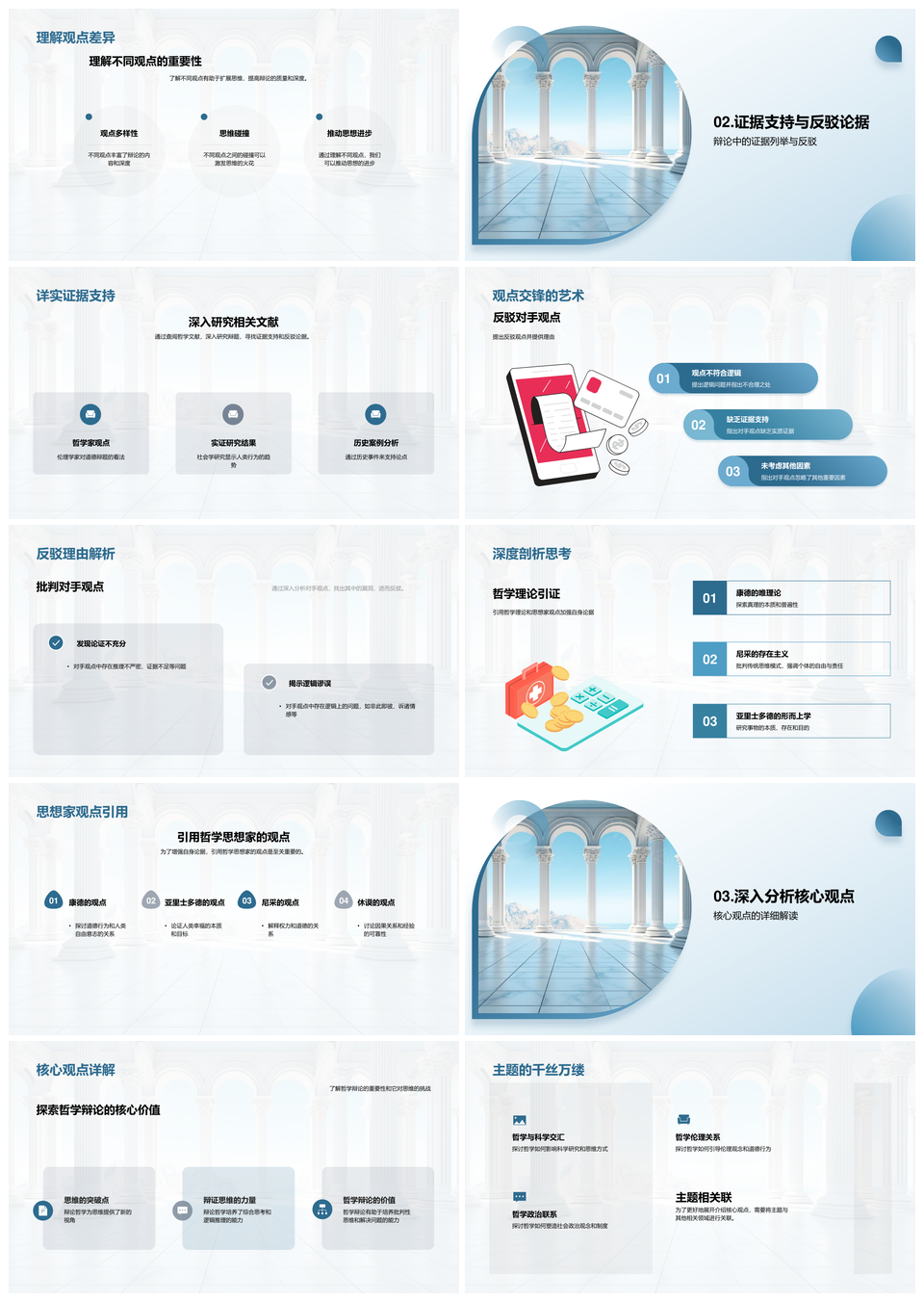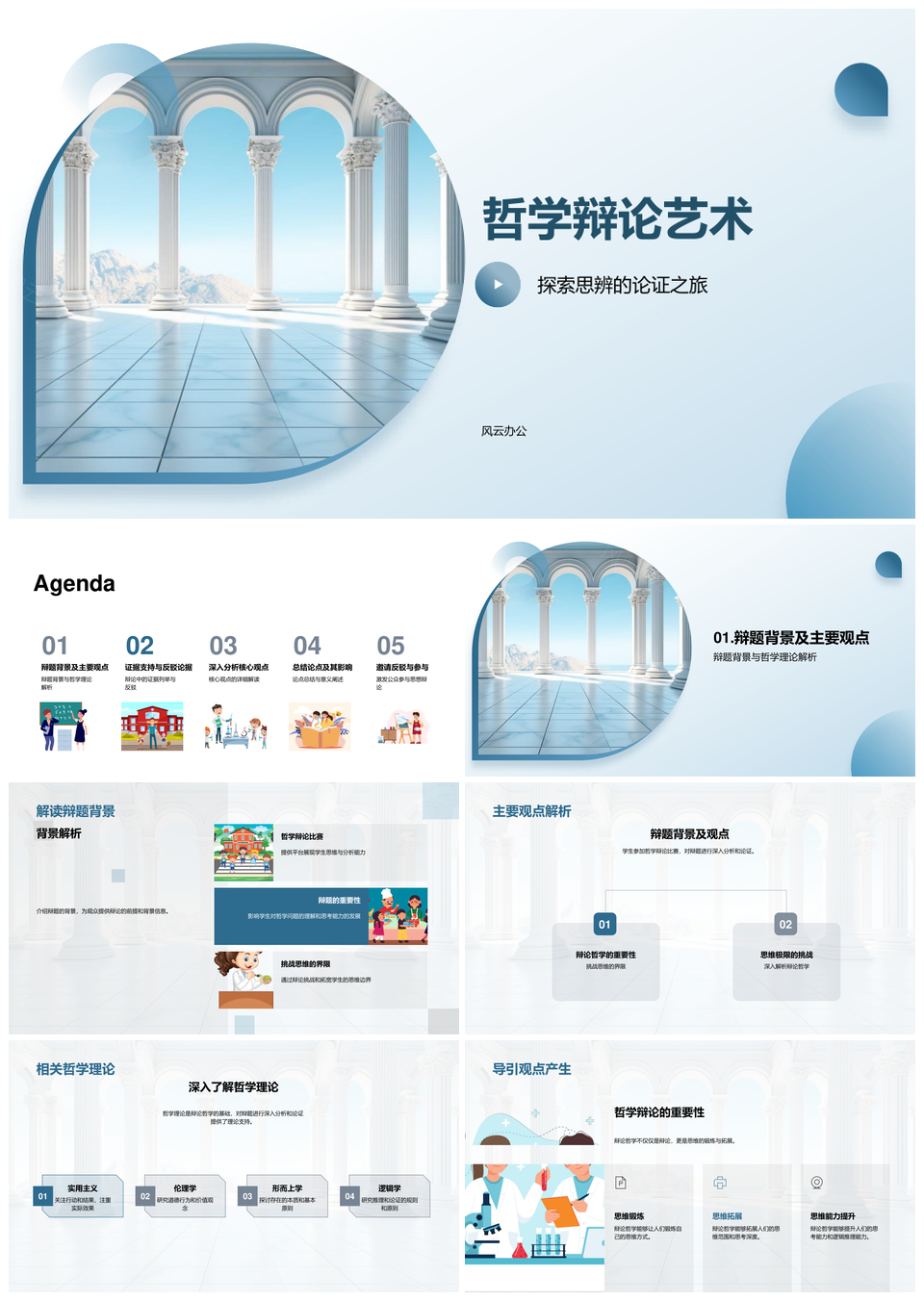 风云办公提供的哲学思辨论证之旅核心观点古希腊柱PPT模板,下载格式为pptx,一共33页,作品中文字及图均可以修改和编辑,图片更改请在作品中右键图片并更换,文字修改请直接点击文字进行修改。
