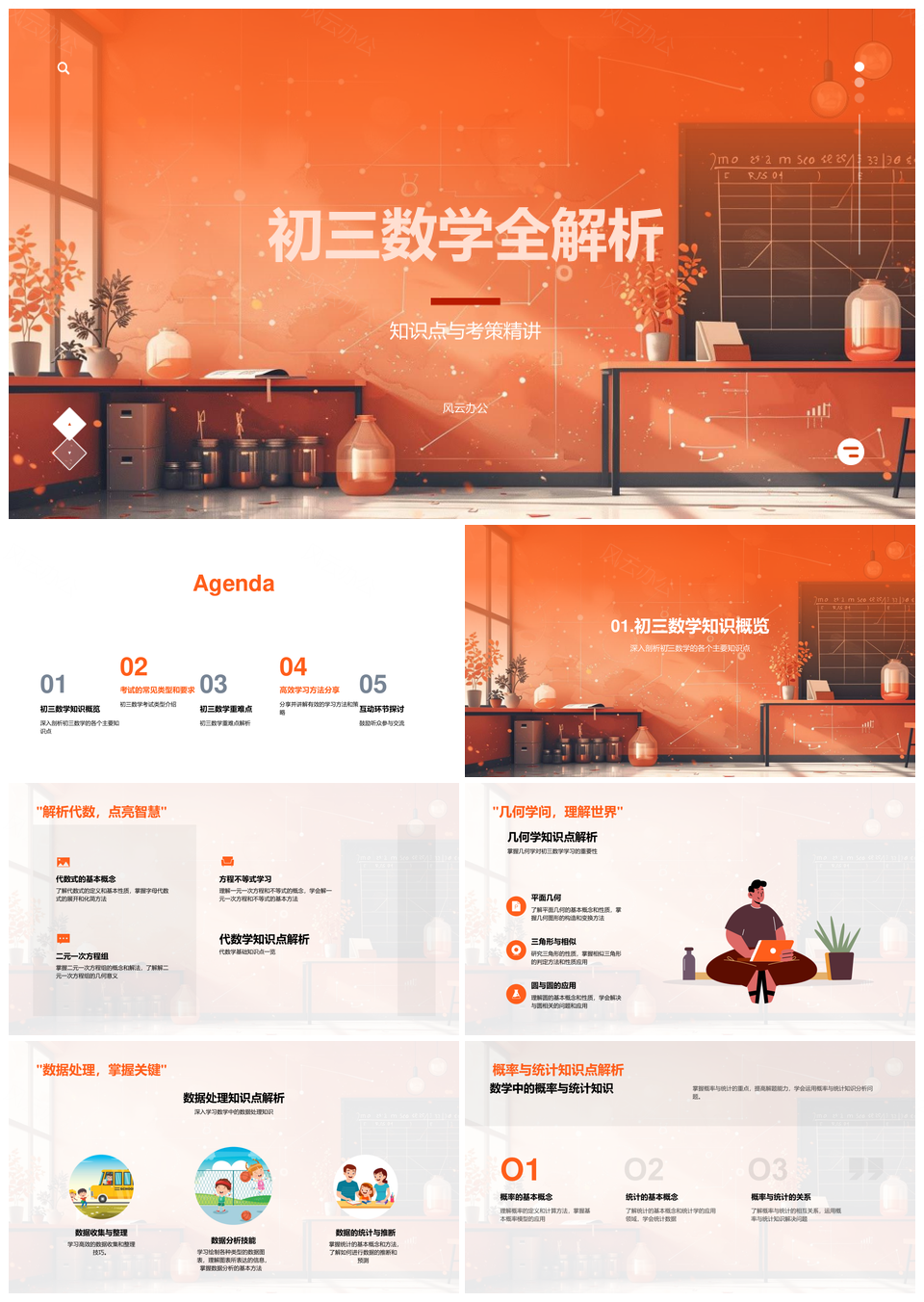 风云办公提供的初三数学代数几何考策题型评分全解析PPT模板,下载格式为pptx,一共25页,作品中文字及图均可以修改和编辑,图片更改请在作品中右键图片并更换,文字修改请直接点击文字进行修改。
