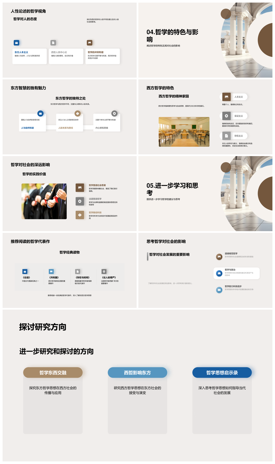 哲学课程理论实践社会影响与学习成果回顾PPT模板