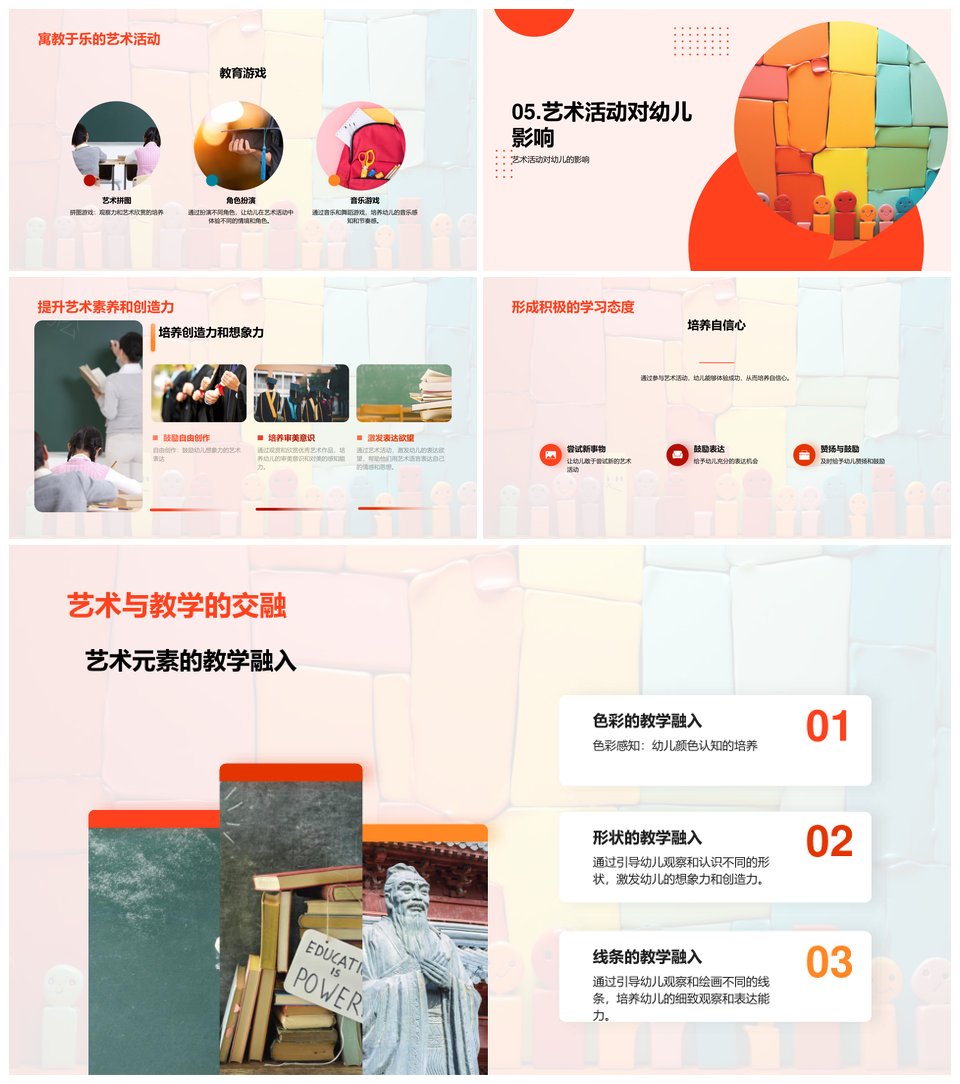 这是一张幼儿艺术活动设计彩色画笔引导情感认知发展PPT模板,包含幼儿、艺术活动、设计、彩色画笔、引导、情感认知发展等主题内容,也可用作幼儿艺术活动设计彩色画笔引导情感认知发展、艺术活动设计彩色画笔引导情感、设计彩色画笔引导情感认知发展、幼儿艺术活动彩色画笔引导、艺术活动设计引导情感认知、彩色画笔引导情感认知发展、幼儿艺术活动设计彩色画笔、幼儿艺术活动引导情感认知、艺术活动设计情感认知发展、幼儿彩色画笔引导情感认知、艺术活动彩色画笔情感认知、彩色画笔引导情感发展、幼儿艺术活动情感认知、艺术活动设计彩色画笔、幼儿引导情感认知发展等PPT场景使用。 风云办公提供的幼儿艺术活动设计彩色画笔引导情感认知发展PPT模板,下载格式为pptx,一共23页,作品中文字及图均可以修改和编辑,图片更改请在作品中右键图片并更换,文字修改请直接点击文字进行修改。