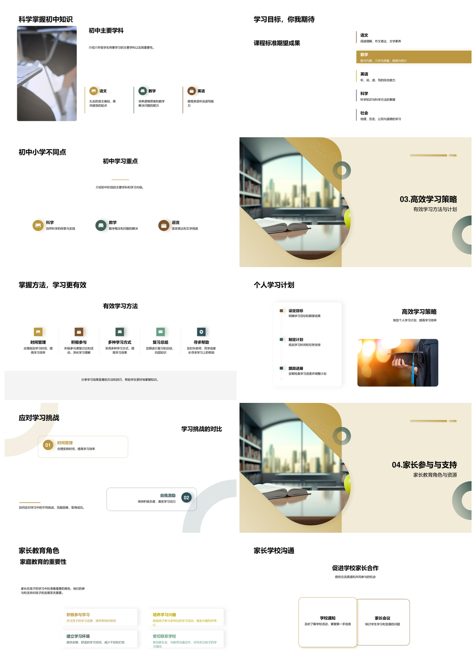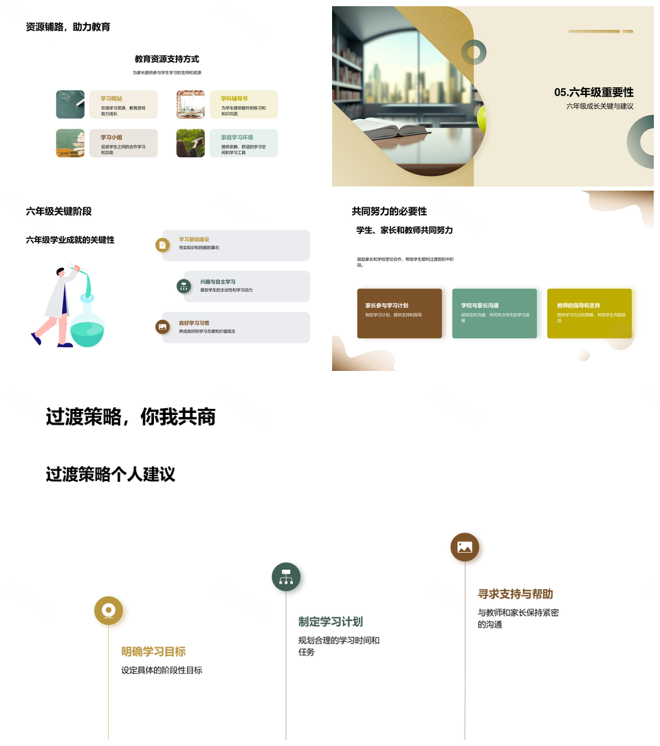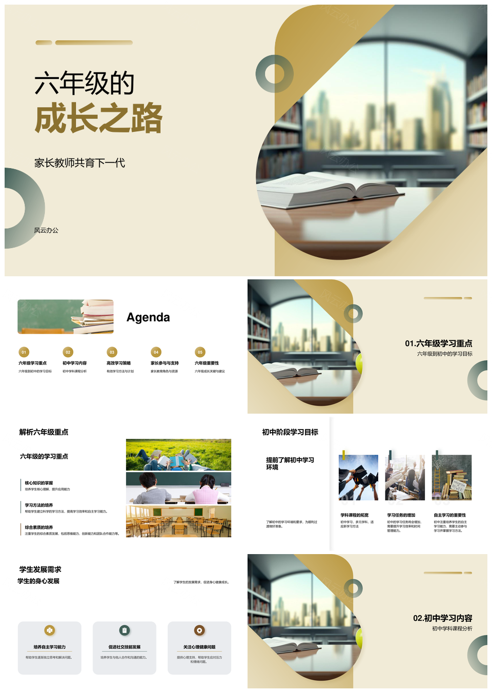 六年级学生主科学习成长计划与家长教育PPT模板推荐
