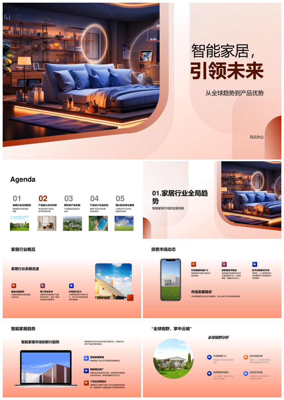 这是一张智能家居核心技术引领全球家居未来趋势PPT模板,包含智能家居、核心技术、引领、全球家居、未来趋势等主题内容,也可用作智能家居核心技术引领全球家居、核心技术引领全球家居未来、引领全球家居未来趋势、智能家居核心技术引领、核心技术引领全球家居、智能家居核心技术、核心技术引领全球、引领全球家居未来、全球家居未来趋势、核心技术引领、智能家居核心、引领全球家居、全球家居未来、家居未来趋势、未来趋势等PPT场景使用。 风云办公提供的智能家居核心技术引领全球家居未来趋势PPT模板,下载格式为pptx,一共33页,作品中文字及图均可以修改和编辑,图片更改请在作品中右键图片并更换,文字修改请直接点击文字进行修改。