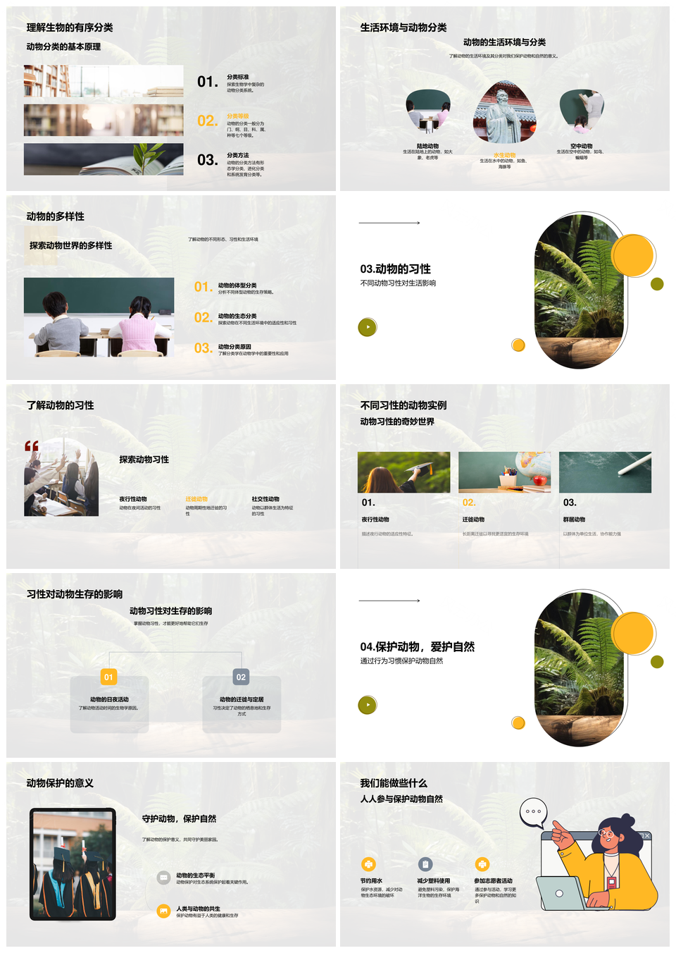 风云办公提供的动物世界保护分类习性自然教育解析PPT模板,下载格式为pptx,一共23页,作品中文字及图均可以修改和编辑,图片更改请在作品中右键图片并更换,文字修改请直接点击文字进行修改。