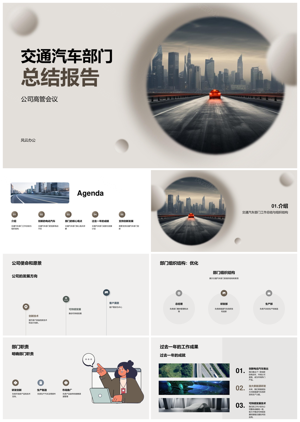 这是一张交通汽车部门使命愿景架构职责成果高管会议报告PPT模板,包含交通、汽车、部门、使命、愿景、架构、职责、成果、高管、会议、报告等主题内容,也可用作交通汽车部门使命愿景架构、汽车部门使命愿景架构职责、部门使命愿景架构职责成果、使命愿景架构职责成果高管、愿景架构职责成果高管会议、架构职责成果高管会议报告、交通汽车部门使命愿景、汽车部门使命愿景架构、部门使命愿景架构职责、使命愿景架构职责成果、愿景架构职责成果高管、架构职责成果高管会议、交通汽车部门使命、汽车部门使命愿景、部门使命愿景架构等PPT场景使用。 风云办公提供的交通汽车部门使命愿景架构职责成果高管会议报告PPT模板,下载格式为pptx,一共25页,作品中文字及图均可以修改和编辑,图片更改请在作品中右键图片并更换,文字修改请直接点击文字进行修改。