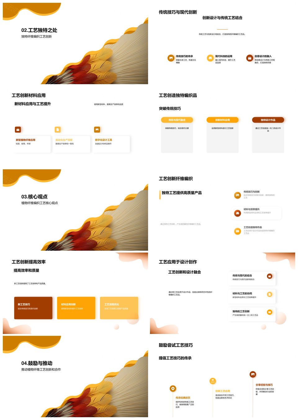 风云办公提供的工艺师创新传统现代纤维艺术新纪元PPT模板,下载格式为pptx,一共20页,作品中文字及图均可以修改和编辑,图片更改请在作品中右键图片并更换,文字修改请直接点击文字进行修改。