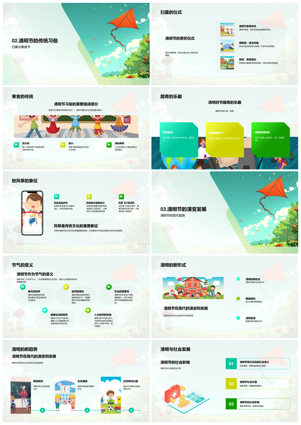 清明节寒食节文化习俗扫墓踏青放风筝历史探索PPT模板
