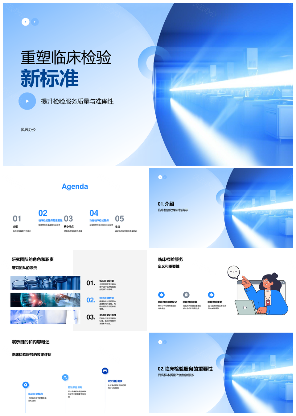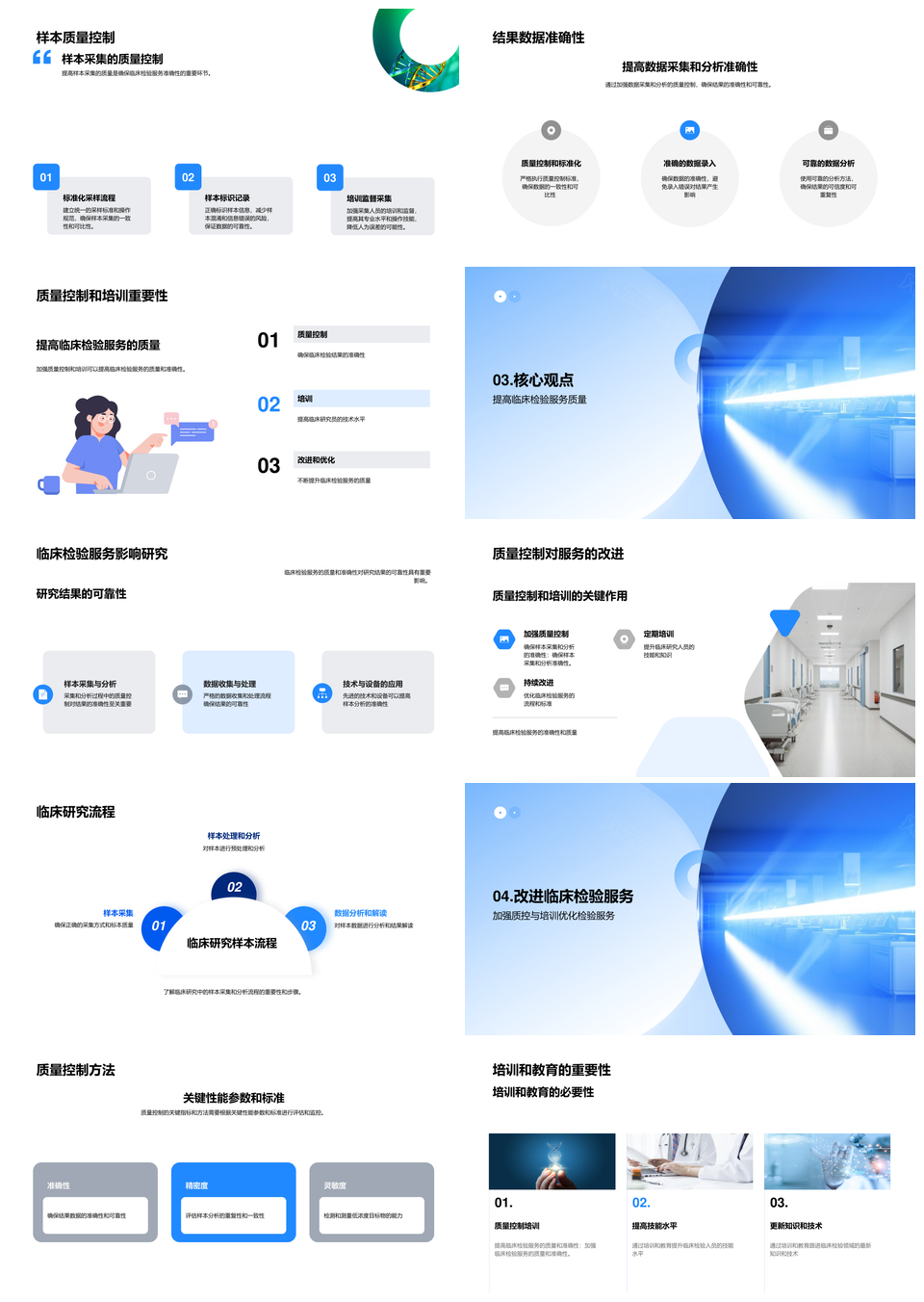 风云办公提供的临床检验服务质控评估与样本分析优化PPT模板,下载格式为pptx,一共23页,作品中文字及图均可以修改和编辑,图片更改请在作品中右键图片并更换,文字修改请直接点击文字进行修改。