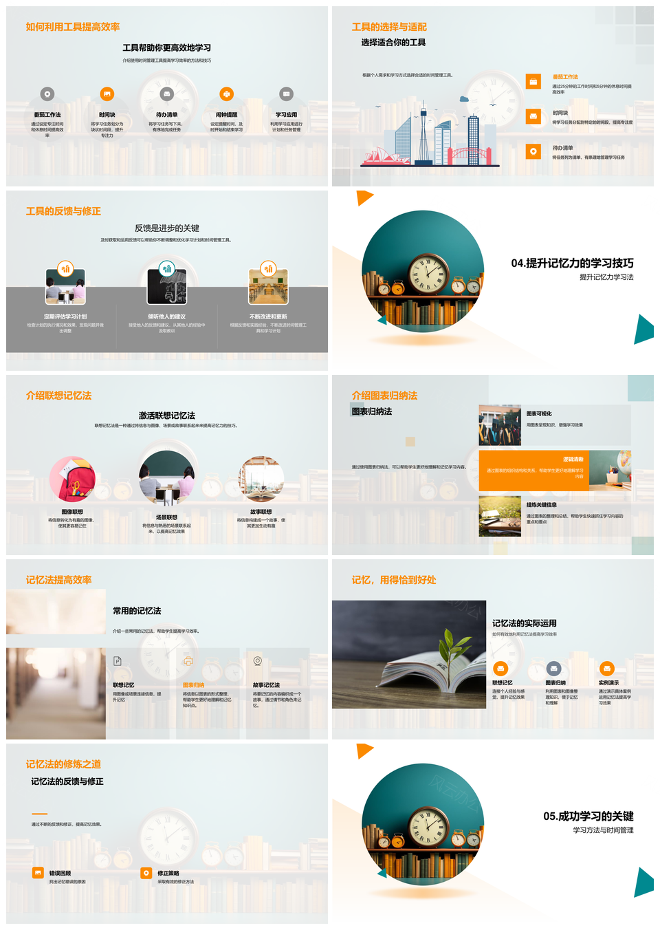 超效学习策略时间管理记忆提升番茄时间块联想图表PPT模板推荐