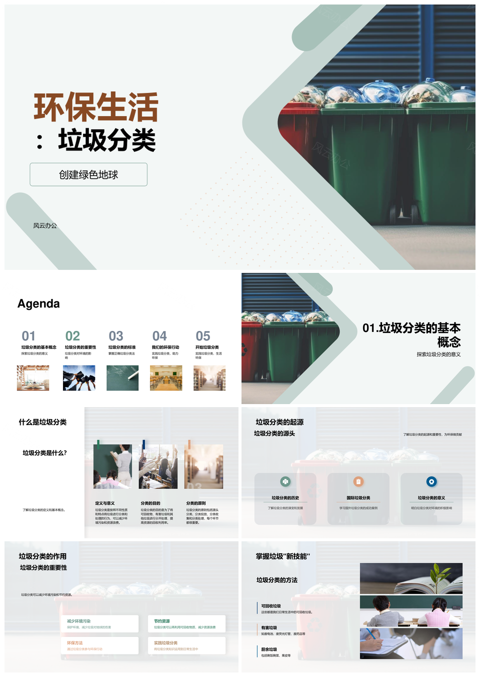 垃圾分类环保生活教育回收减污低碳PPT模板