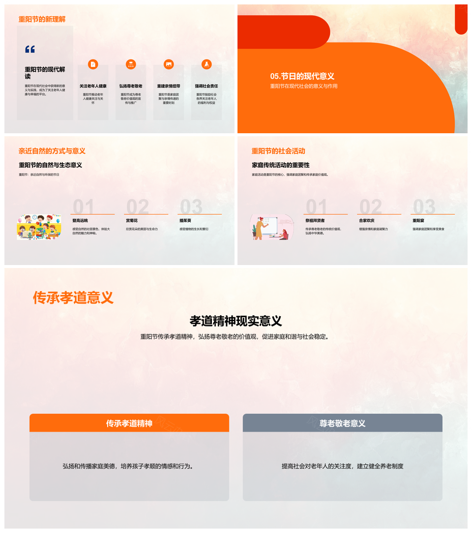 重阳节古今尊老习俗与登高赏菊PPT模板