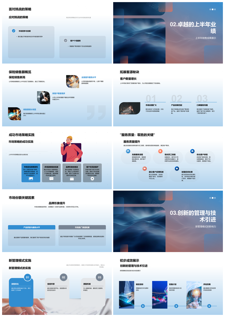 保险年中销售客户增长市占升新管理技术新品服务提质PPT模板推荐