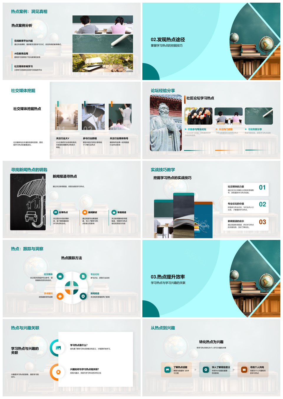社交媒体论坛挖掘学习热点提升效率兴趣PPT模板推荐