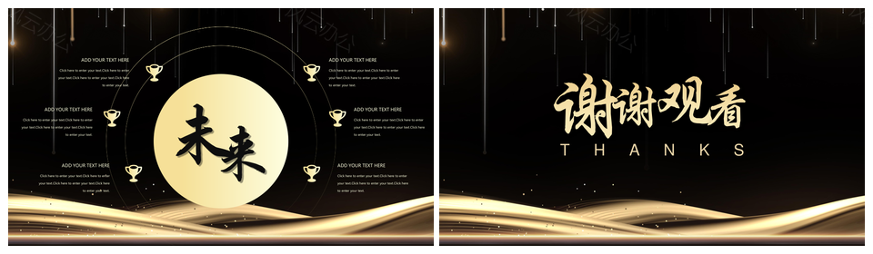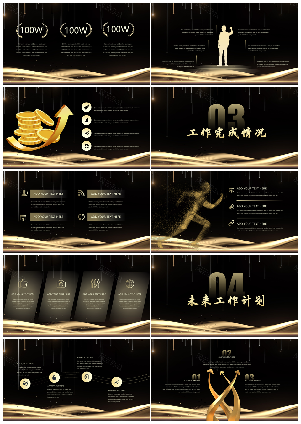 年终总结黑色黑金风轻奢大气总结计划工作汇报PPT模板
