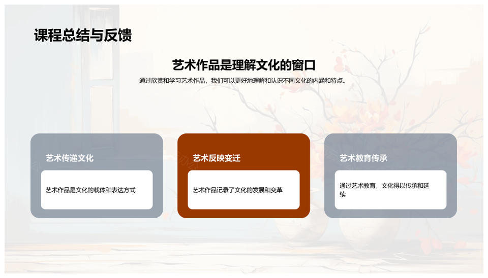 这是一张艺术文化传承教育与社会价值观PPT模板,包含艺术文化、传承、教育、社会、价值观等主题内容,也可用作艺术文化传承教育、文化传承教育社会、传承教育社会价值观、艺术文化传承、文化传承教育、传承教育社会、教育社会价值观、艺术文化教育、文化教育社会、传承社会价值观、艺术文化、文化传承、传承教育、教育社会、社会价值观等PPT场景使用。
