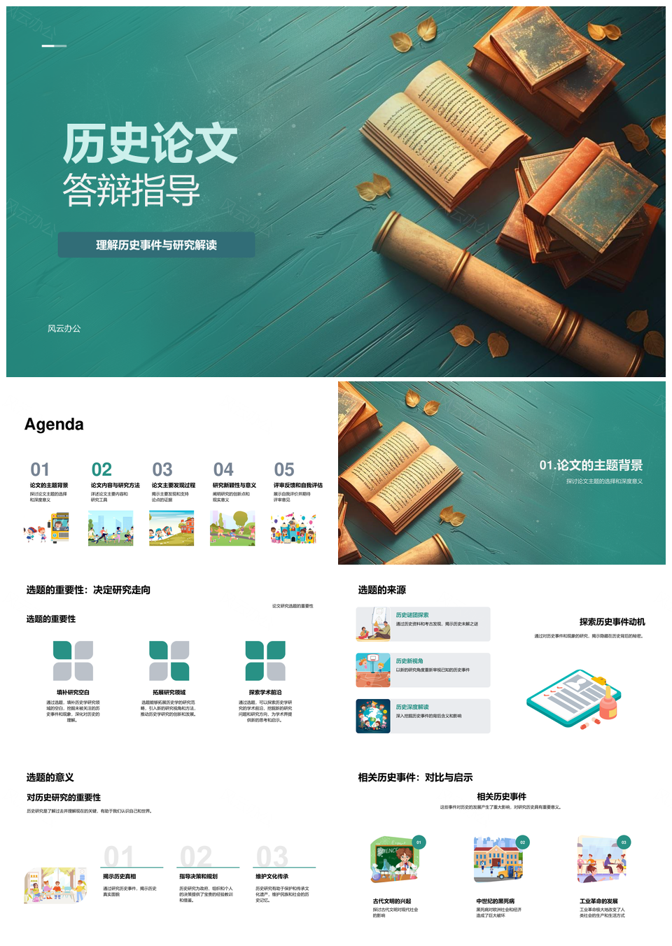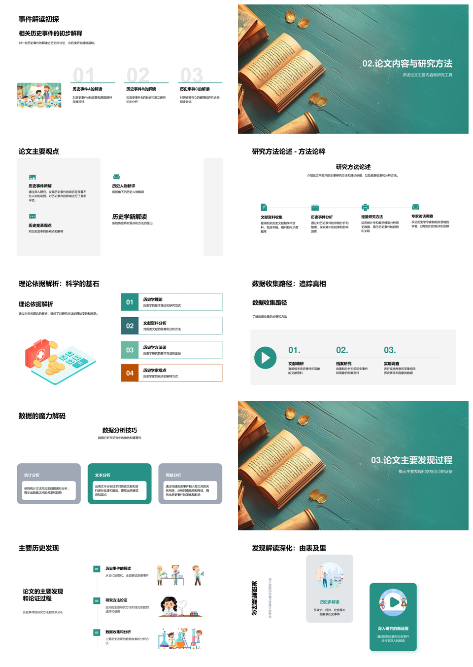 历史论文答辩选题事件研究解析方法发现PPT模板推荐