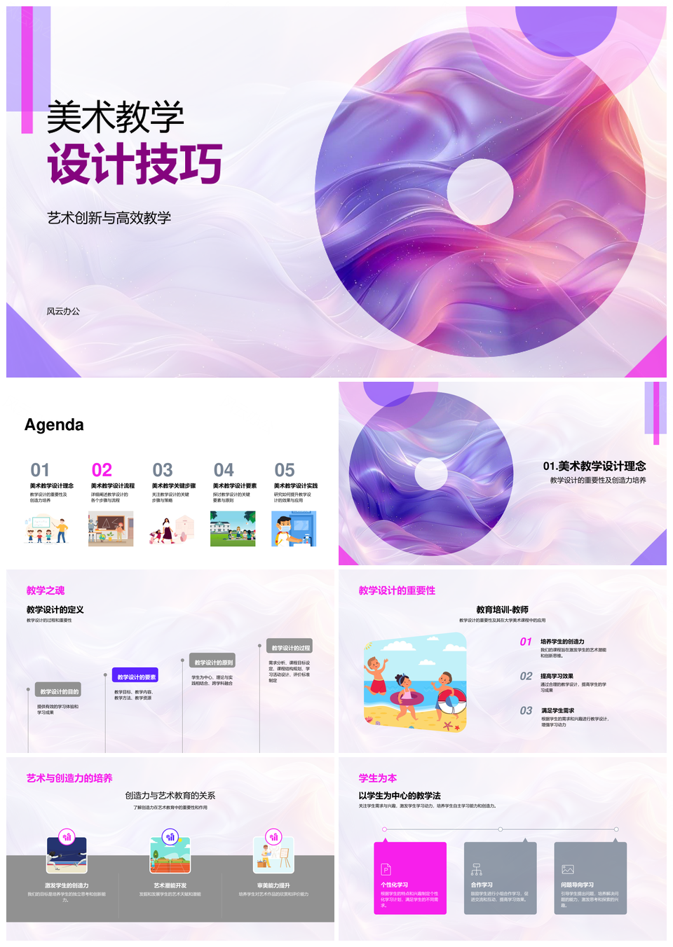 风云办公提供的美术跨科创新教学理实融合高效设计PPT模板,下载格式为pptx,一共33页,作品中文字及图均可以修改和编辑,图片更改请在作品中右键图片并更换,文字修改请直接点击文字进行修改。