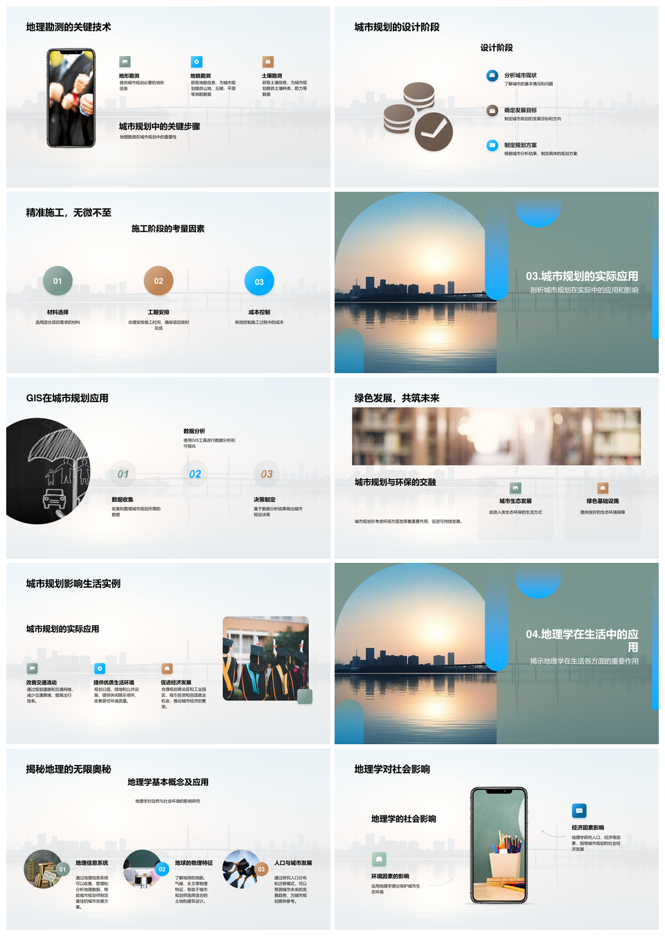 地理视角城市规划三原则勘测设计施工天际线PPT模板推荐