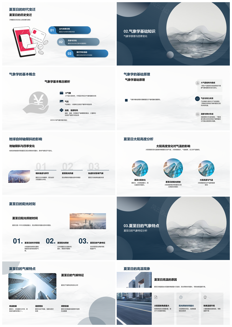 风云办公提供的夏至气象学解析地轴倾斜四季太阳高温PPT模板,下载格式为pptx,一共33页,作品中文字及图均可以修改和编辑,图片更改请在作品中右键图片并更换,文字修改请直接点击文字进行修改。