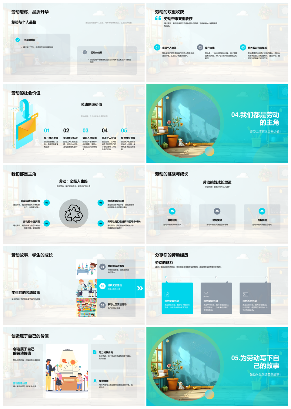 风云办公提供的劳动育品格奉献创价值教育助学生成功PPT模板,下载格式为pptx,一共33页,作品中文字及图均可以修改和编辑,图片更改请在作品中右键图片并更换,文字修改请直接点击文字进行修改。