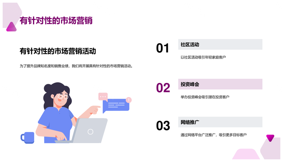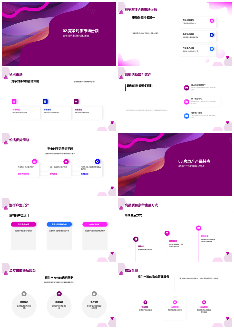 这是一张2025房地产年轻家庭投资客户竞争市场份额营销价格优势策略PPT模板,包含2025、房地产、年轻家庭、投资客户、竞争、市场、份额、营销、价格优势、策略等主题内容,也可用作2025房地产年轻家庭投资客户、房地产年轻家庭投资客户竞争市场、年轻家庭投资客户竞争市场份额、2025房地产竞争市场份额策略、房地产投资客户竞争市场份额营销、房地产竞争市场份额营销价格优势、年轻家庭竞争市场份额营销策略、投资客户营销价格优势策略、房地产价格优势策略、2025年轻家庭投资客户、房地产竞争市场份额、份额营销价格优势、价格优势策略、2025房地产营销、年轻家庭投资客户等PPT场景使用。 风云办公提供的2025房地产年轻家庭投资客户竞争市场份额营销价格优势策略PPT模板,下载格式为pptx,一共29页,作品中文字及图均可以修改和编辑,图片更改请在作品中右键图片并更换,文字修改请直接点击文字进行修改。