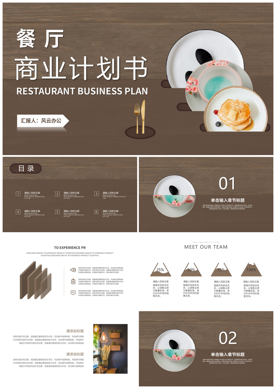 咖色简约风餐厅商业计划创新企业推广数据PPT模板