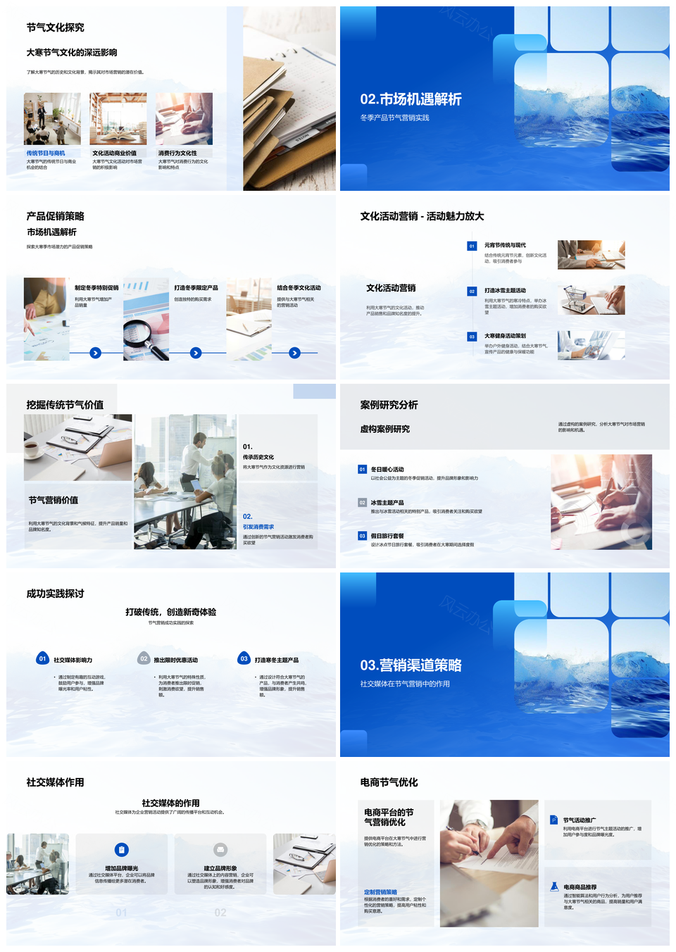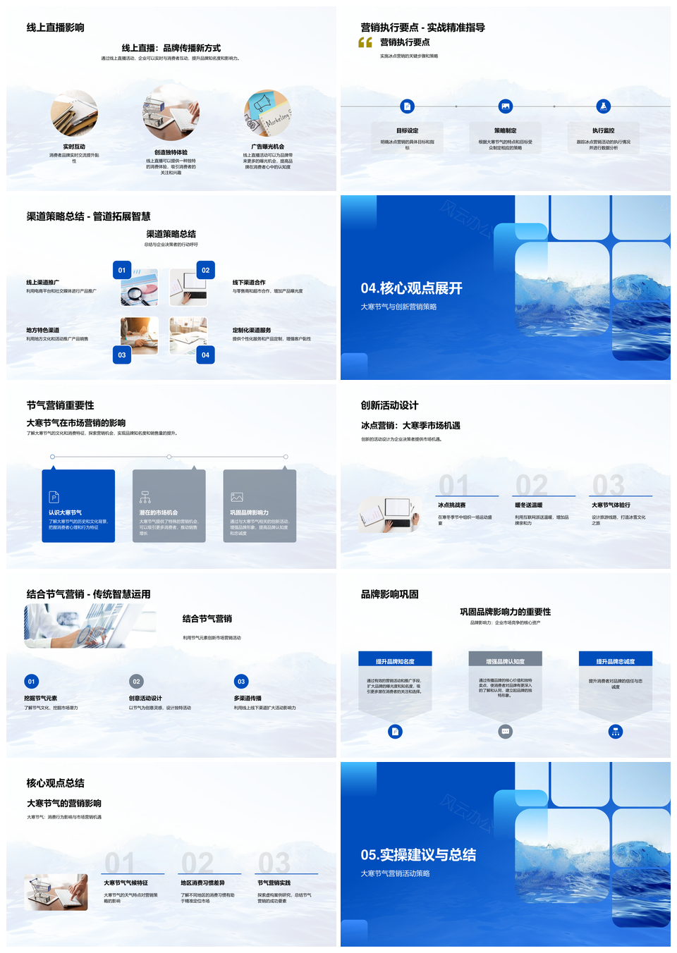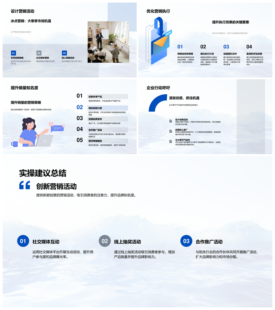 这是一张大寒节气冬季产品促销社交媒体营销策略PPT模板,包含大寒节气、冬季产品、促销、社交媒体、营销策略等主题内容,也可用作大寒节气冬季产品促销、节气冬季产品促销社交媒体、冬季产品促销社交媒体营销、产品促销社交媒体营销策略、促销社交媒体营销策略、大寒节气冬季产品、节气冬季产品促销、冬季产品促销社交媒体、产品促销社交媒体营销、促销社交媒体营销策略、大寒节气冬季、冬季产品促销、产品促销社交媒体、社交媒体营销策略、大寒节气等PPT场景使用。 风云办公提供的大寒节气冬季产品促销社交媒体营销策略PPT模板,下载格式为pptx,一共33页,作品中文字及图均可以修改和编辑,图片更改请在作品中右键图片并更换,文字修改请直接点击文字进行修改。