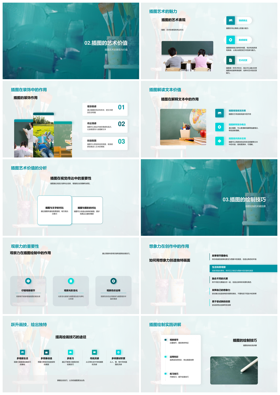 风云办公提供的插图艺术技巧灵感价值探析PPT模板,下载格式为pptx,一共28页,作品中文字及图均可以修改和编辑,图片更改请在作品中右键图片并更换,文字修改请直接点击文字进行修改。