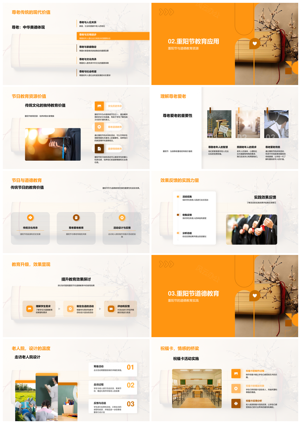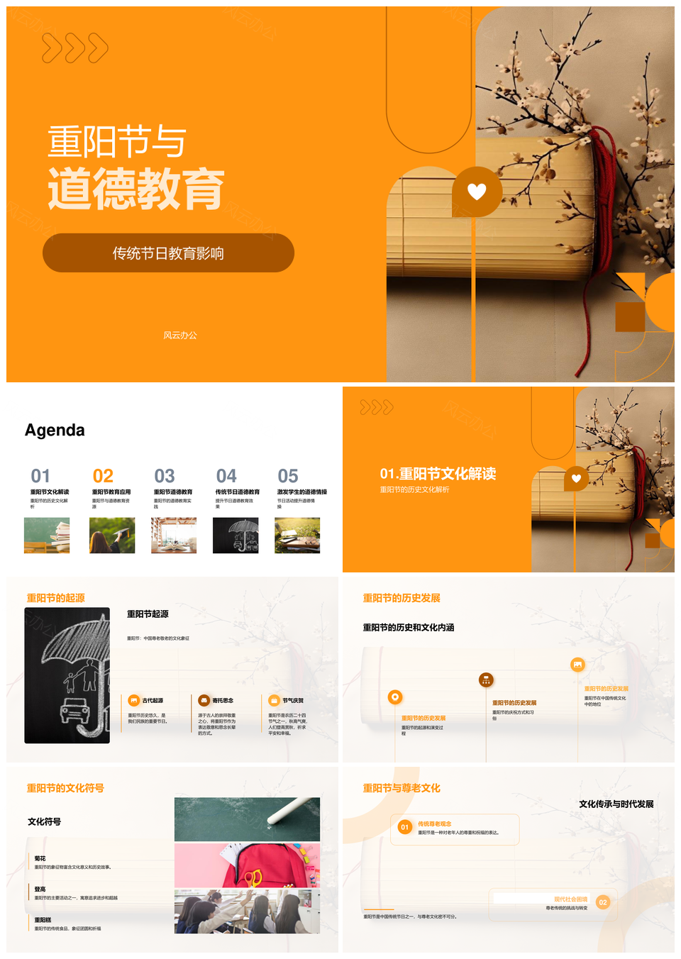 风云办公提供的重阳节尊老传统融入道德教育PPT模板,下载格式为pptx,一共33页,作品中文字及图均可以修改和编辑,图片更改请在作品中右键图片并更换,文字修改请直接点击文字进行修改。
