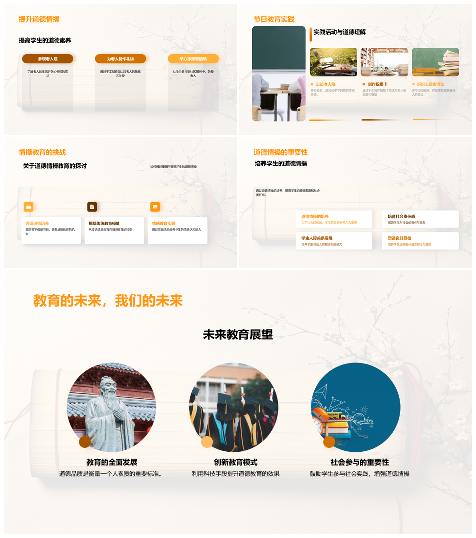 这是一张重阳节尊老传统融入道德教育PPT模板,包含重阳节、尊老传统、融入、道德教育等主题内容,也可用作重阳节尊老传统融入道德教育、尊老传统融入道德教育、传统融入道德教育、重阳节尊老传统融入、重阳节尊老传统道德、尊老融入道德教育、融入道德教育传统、重阳节尊老道德教育、重阳节传统道德教育、尊老传统道德教育、尊老传统融入道德、传统融入道德教育、重阳节尊老融入、尊老传统融入、道德教育传统、重阳节尊老、尊老传统、传统融入、融入道德、道德教育等PPT场景使用。